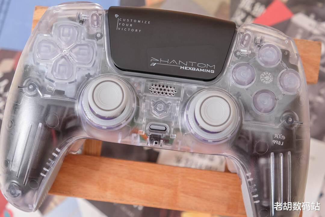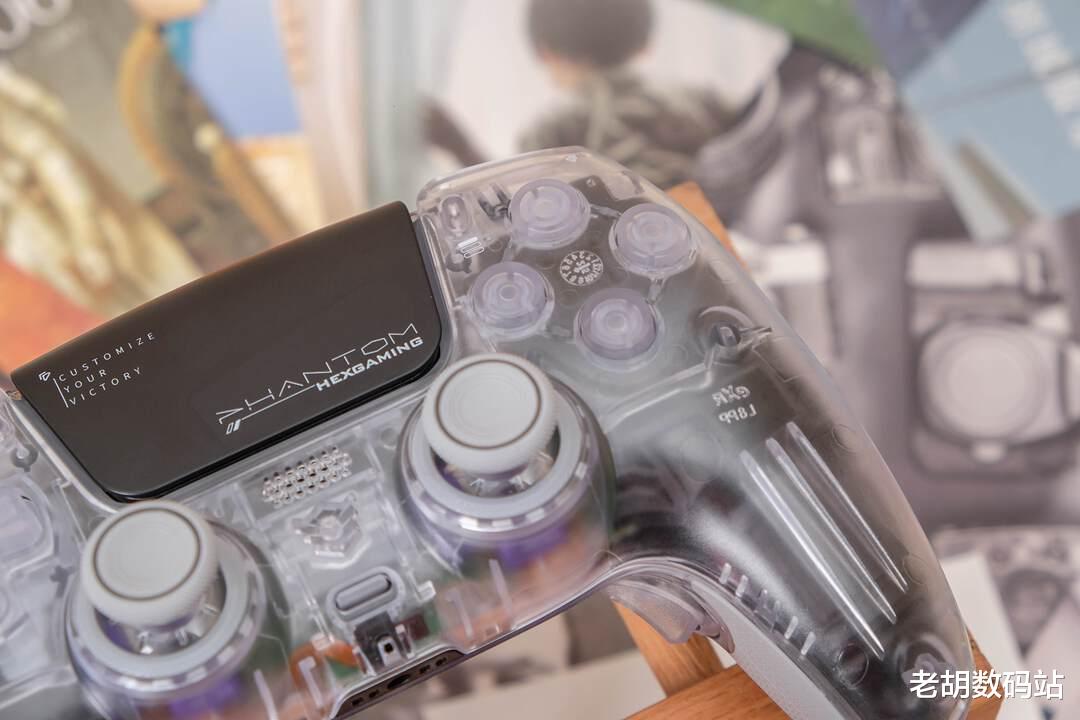 那么黑克斯幻刃手柄在DS5的基础上做了那些客制化的改装呢?首先,重新设计了整体外观,将标志性的分离式面板革新为一体成型的上盖,并醒目地烙印上黑克斯专属徽标。同时,握柄处覆盖了大面积的亲肤防滑胶垫,极大地增强了把持的稳定感与舒适度,实现了对原版手感的全面超越。