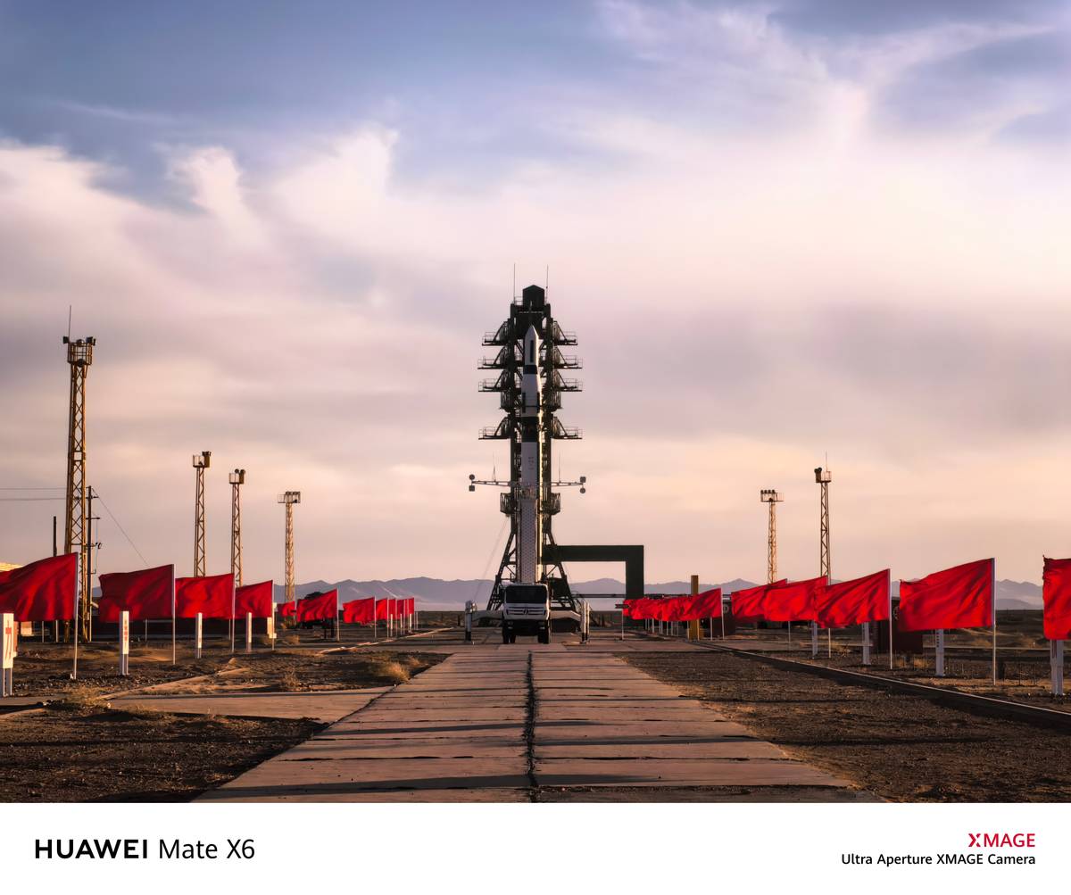 除了捕捉火箭腾空的壮美瞬间,华为Mate X6还在发射前记录下了火箭蓄势待发的照片——傍晚柔和的夕阳,地面上高耸入云的火箭,共同构成极具视觉冲击力的画面,让人一眼就能感受航天科技的无限魅力。而这张照片能够拥有如此丰富的明暗细节,是因为华为Mate X6搭载有支持F1.4-F4.0十档物理光圈调节的5000万超聚光主摄,可以在暗光/夜景环境下提高画面整体亮度,同时尽可能保留更多的暗部细节。