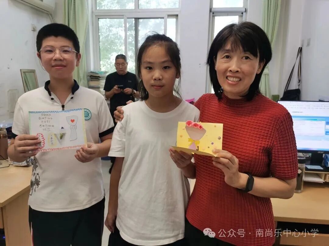 课间学生们拿着自己在教师节亲手制作的贺卡送给教师们,并送上“祝老师节日快乐”的祝福,温暖的瞬间拉进了师生的距离,让教师们感受了做教师的幸福与快乐!