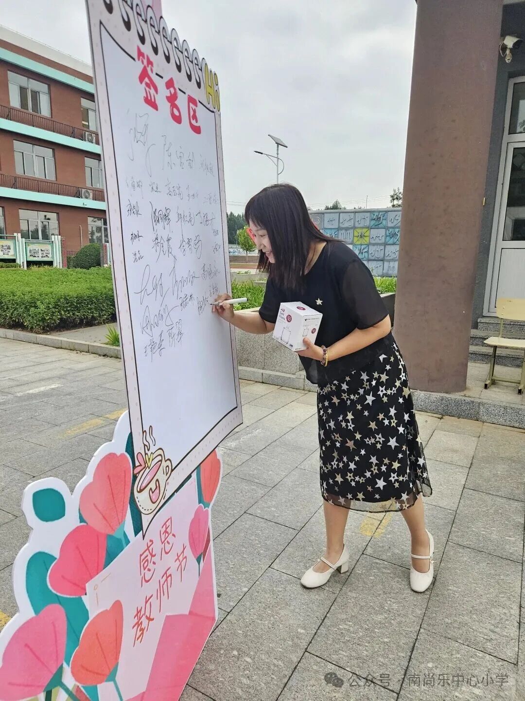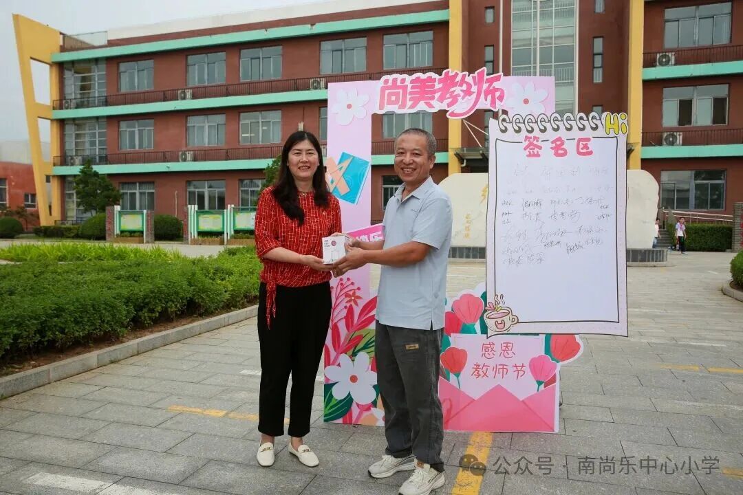 2025年9月10日清晨,聆听着歌曲——《每当我走过教师窗前》,南尚乐中心小学各校区干部站在学校大门口迎接教师们入校,一句温馨的祝福“节日快乐”、一个小小的礼物、一张精美的照片、一个潇洒的签名,让教师们感受了节日的幸福和“尚乐”大家庭的温暖。