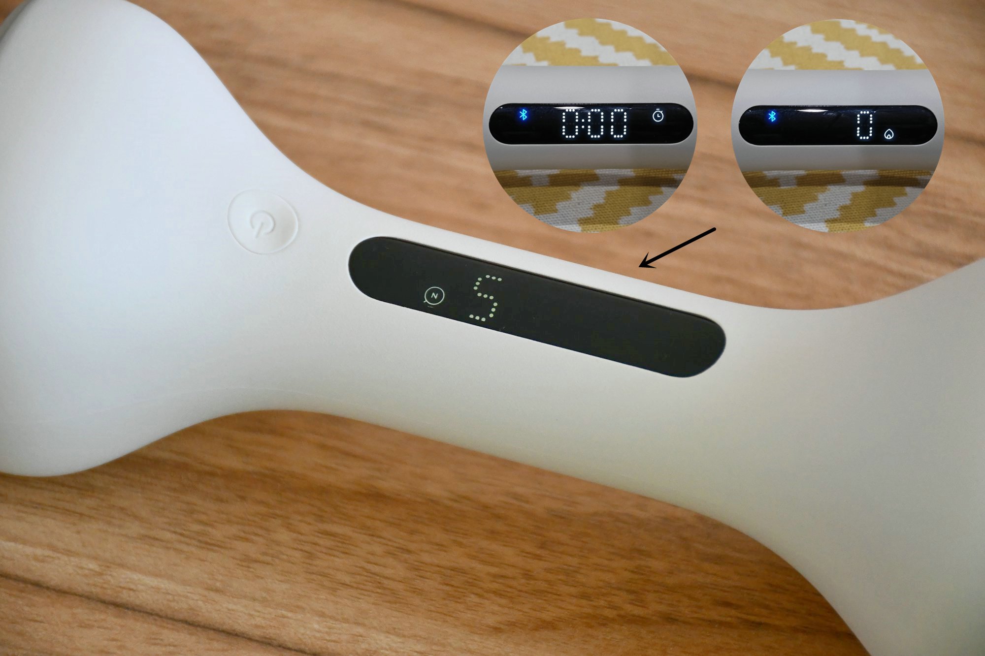 显示屏采用的是点阵显示的方式,即使在光线条件差的情况下也能显示清晰。开机默认显示当前的训练次数,短按开机按钮实现训练时长、卡路里消耗的显示轮换。