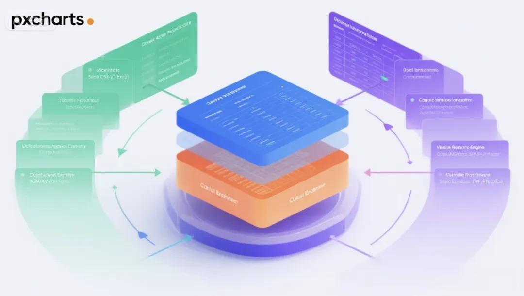 核心特性多表格管理支持创建和管理多个独立的数据表格多种视图模式表格视图、图表视图、看板视图高性能渲染支持虚拟化滚动,优化大数据量渲染性能丰富的交互功能拖拽排序、筛选、搜索、分组等数据导入导出支持多种格式的数据导入和导出自定义配置灵活的字段配置、颜色规则、主题设置在设计这样的复杂表格组件之前,我们需要提前构思好它的技术架构,下面我会分享一下 pxcharts 多维表格编辑器的技术架构,以及核心的技术实现原理,帮助大家快速上手复杂表格开发。