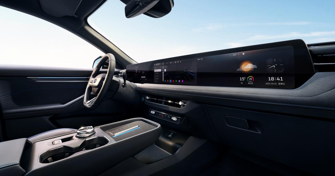 大空间品质享受:福特新蒙迪欧以2945mm超长轴距及1875mm宽体车身打造越级座舱空间,真正实现“真5座”宽适布局。配合520L超大后备箱与新增4.5L中控储物空间,真正做到宽适能装。车内配备贯穿式27英寸4K大屏,搭载座椅通风加热、50W无线快充等舒适功能,以“大空间+豪华配置”重新定义品质出行,为用户带来媲美豪华“大平层”的驾乘享受。