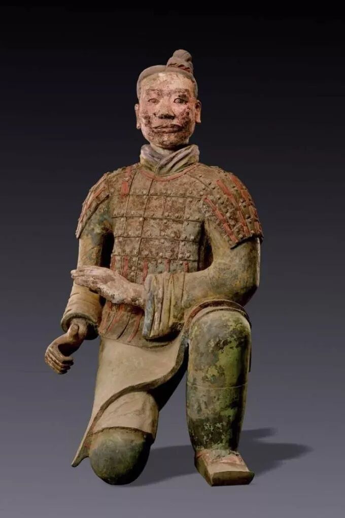 1999年9月,考古人员在秦陵二号陪葬俑坑中发现了绿面跪射俑。