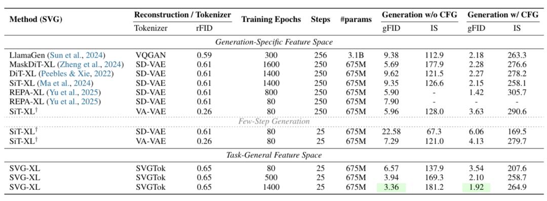 实验结果显示,SVG在生成质量、效率、多任务通用性上全面超越传统VAE方案。