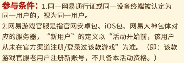 不少玩家在参与的时候,最容易踩坑的就是新用户判定。最后在此特别提醒大家,参与活动时一定要注意新用户的判定规则:只有在2月15日活动开始前,从没在官网安卓、网易大神或iOS包体注册登录过对应游戏的账号,才算新用户,老号开小号是不算数的,拉人之前先确认清楚,别白忙活一场!