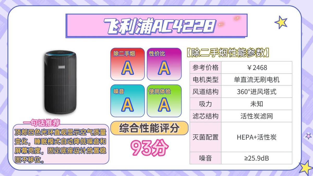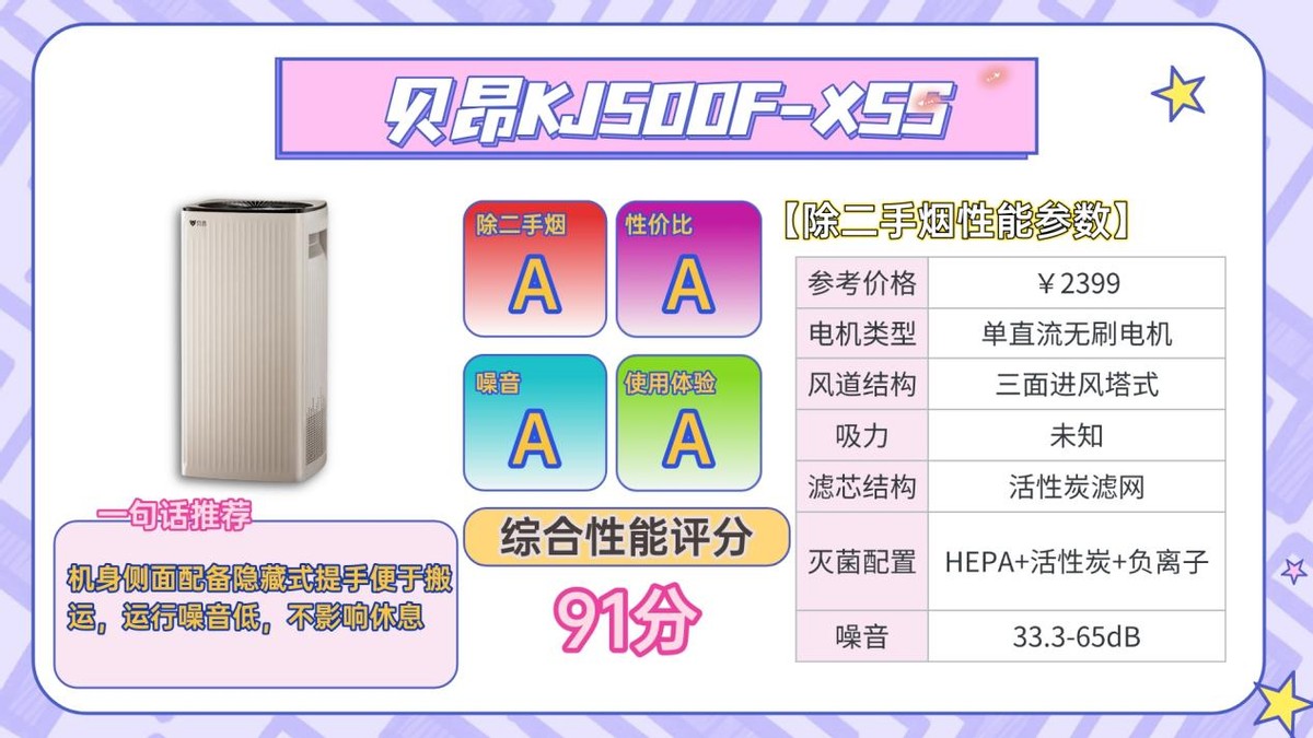 除二手烟性能:采用360度环绕进风口设计,能从各个方向有效捕捉室内烟雾,配合中等风量快速循环空气。滤网系统包含专门优化的活性炭层,针对香烟中的异味分子进行深度吸附。