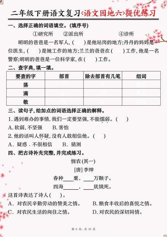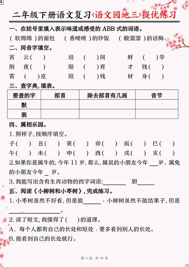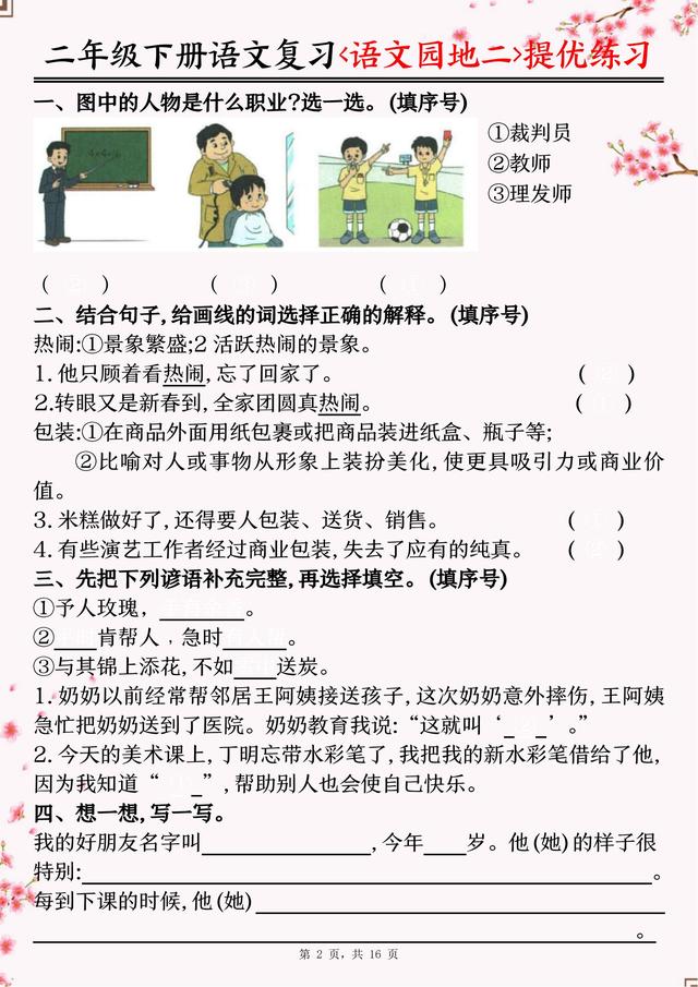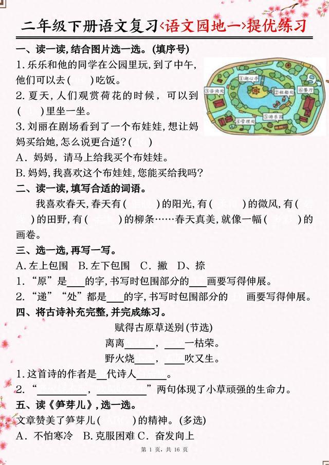 二年级下册语文:期末考前练完这“18页”,轻松考98分