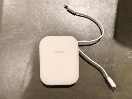 这款体积不大的充电宝在日常使用中给人的第一印象是“顺手”。自带一根可拆卸的Type-C线,平时不用时当提手使用,出门不用额外带线这一点确实方便,尤其是短途通勤或临时补电场景。接口数量也比较充足,两个USB-C加一个USB-A,同时给两三台设备供电没什么压力。