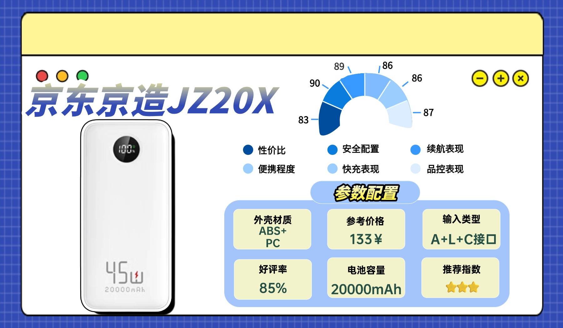 安全方面做得比较完整,多重认证加上稳定的电芯表现,日常使用比较安心。相对来说,它的容量不算特别大,如果是重度用户可能会觉得续航不够。另外价格偏高一些,在同容量产品里不算便宜,但换来的是更高的充电功率和整体稳定性。