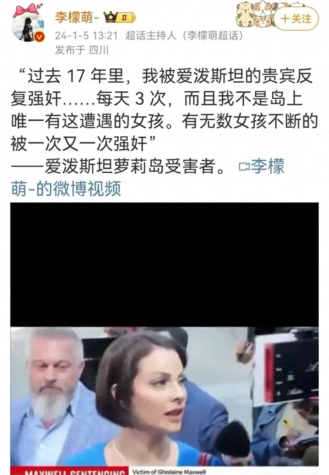 第一,美国人在岛上,堂而皇之的嫖宿幼女,甚至是强奸,赤裸裸的犯罪,主犯爱泼斯坦竟在监狱里离奇自杀了。这事比陈清泉嫖娼、高育良娶香港女人等行为恶劣一万倍,涉及人员级别也甩高育良这样的“小官”好几条街。可是,平时在国内那么厉害的“女拳”们,怎么没见你们向美国人打拳?这是多好的宣传女性权利、揭露男权社会不公正的案例啊。难道你们真的是收了“灯塔”的钱、当了“远程养殖业”的耗材了?还是你们的智商,只能看懂中国小伙在给落水女子做人工呼吸时,不小心碰到了女子身体的新闻?以后再见到“女拳”账号,请把这段话贴给它们。