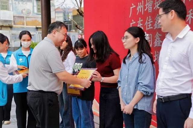 相片:增城区委社会工作部副部长、二级调研员黄海锋同志为爱心奉献单位颁发牌匾