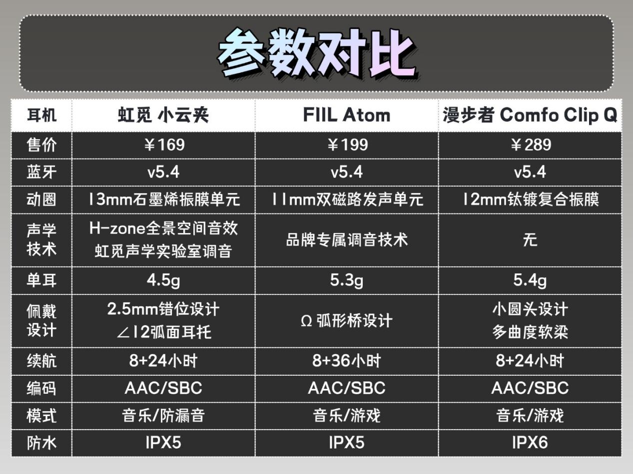 为了帮你找到真正高性价比的耳夹式耳机,我这次专门挑了虹觅、FIIL、漫步者这三款热门的耳夹式耳机,从外观做工、佩戴舒适度、音质表现到各项核心配置,一项一项做了详细的对比。不吹不黑,只说真实的使用感受,把每款的优缺点都列得明明白白,看完你就能知道怎么选到适合自己的高性价比耳夹了。