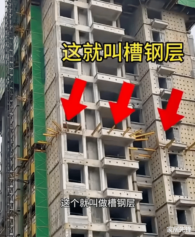 很多人可能不知道什么是槽钢层,在建筑工程中,为了确保施工安全,在墙体内部设置工字钢支撑,以固定外悬挑脚手架,以增强脚手架的稳定性。当脚手架彻底拆除以后,这些工字钢通常都会被切割或者抽离。