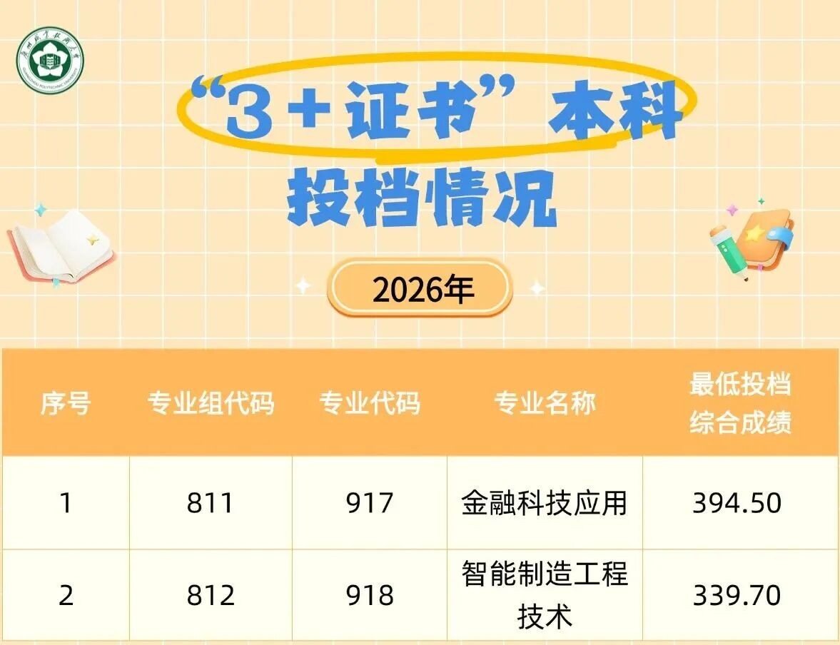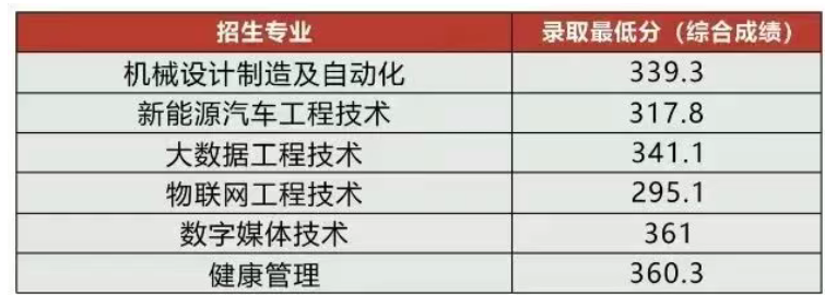 其中金融科技应用专业最低综合成绩为394.5分,智能制造工程技术专业为339.7分。
