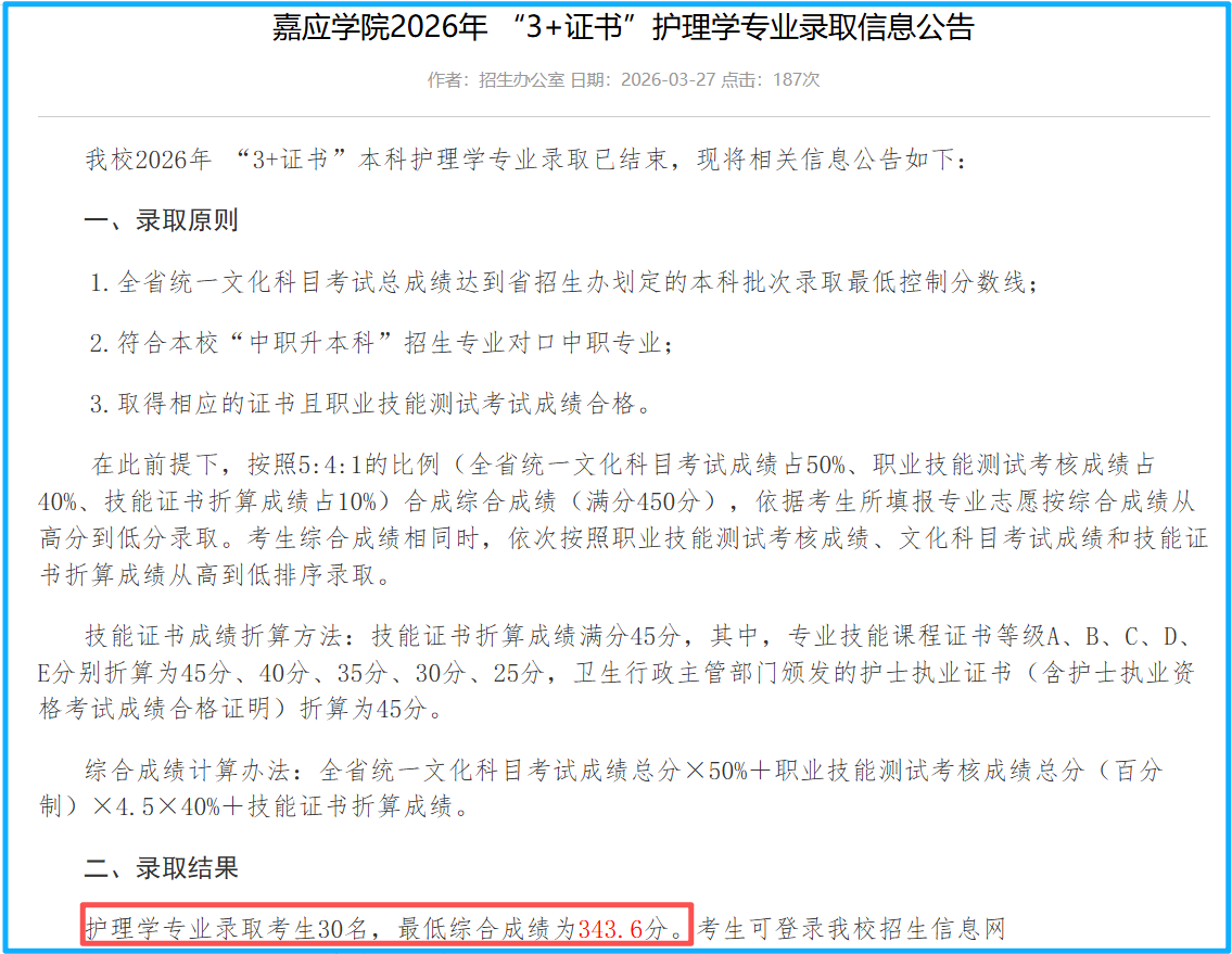 嘉应学院2026年 “3+证书”本科护理学专业录取已结束,录取结果如下: