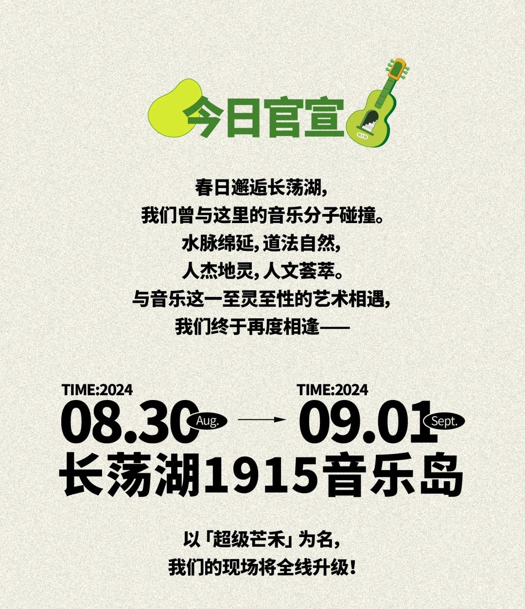 长荡湖·超级芒禾音乐节官宣!8.30-9.1,遇见长荡湖1915音乐岛!