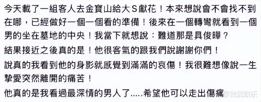 具俊晔就这样陪伴大S,在大S的墓前重温她的美好。