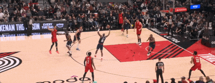 当然他本赛季也没有那么吃空间,他的三分命中率为37.6%为近三个赛季最高,场均出手2.9次三分,命中1.1个三分。