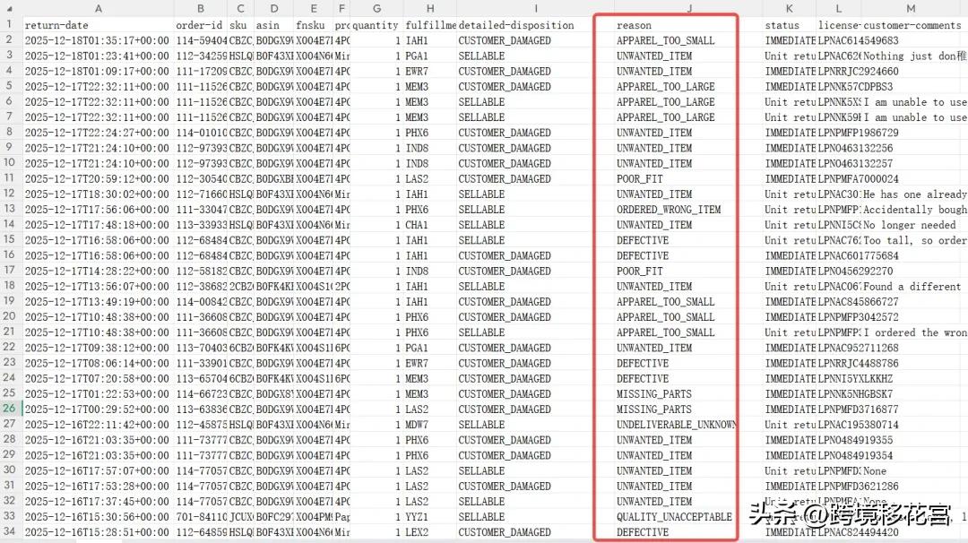 为了搞清楚钱到底亏在哪,我直接去后台下载了亚马逊物流的买家退货分析,接下来就是逐个击破退货原因的环节。