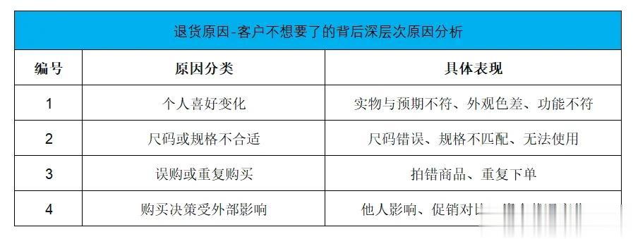 结合评论与行业常见情况,卖家不想要了的深层退货原因可分为四类: