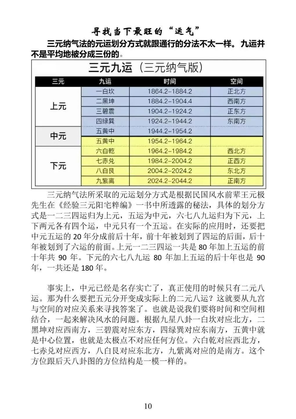张赟慧先生师承易学大家黄鉴,精研传统易学与现代环境风水,提倡 “学易用易、有理有术”,将古法三元九运与当代人居环境完美融合。是书核心,独创 **“二元八运” 元运划分体系 **,改良传统三元九运,依王源极《经验三元阳宅萃编》秘法,将一二三四运归上元、六七八九运归下元,五运分寄上下,契合杨筠松古诀,精准适配 2020—2044 年下元旺气(西北、西、东北、南),直指 “人在哪里,气就在哪里” 的核心要义。
