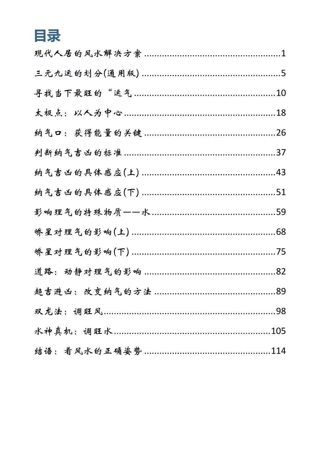 全书 120 页,逻辑清晰、由浅入深、图文并茂、实操至上,系统收录现代人居风水解决方案、三元九运奥义、太极点定位、纳气口甄别、元运旺衰判断、上元下元纳气吉凶感应、水法理气、峤星影响、道路理气、趋吉避凶法门、双龙调风法、水神真机等高阶秘要,覆盖阳宅纳气全流程,从理论到实操、从判断到调整,一步到位。