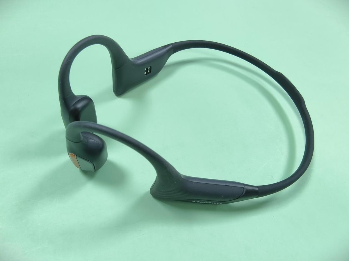 它的佩戴舒适度真的做到了百元级天花板,整机只有 26g,比普通骨传导耳机轻 25%,戴在头上几乎感觉不到重量,真正实现了 “空气感佩戴”。机身用的是 0.7mm 的柔韧钛丝做内部骨架,外面包裹着液态亲肤低敏硅胶,钛丝弹性特别好,我使劲掰弯耳挂后,松手能秒回弹,不会变形,而且塑形能力强,不管是大头围、小头围,还是耳朵偏大、偏小,都能完美贴合头部轮廓,不会出现夹头或松动的情况。