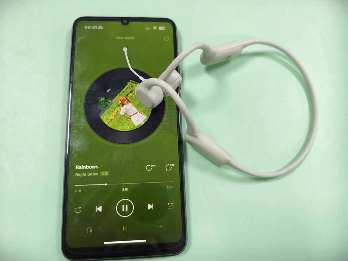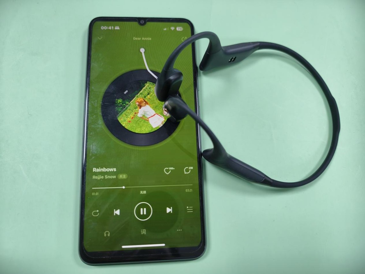 它用的是自研的骨传导技术,蓝牙 5.4 版本,参数看着和南卡差不多,但实际音质表现只能算勉强合格。低频表现尚可,能满足运动时对节奏感的需求,听快节奏歌曲时能带动情绪;但中高频细节缺失严重,人声听起来很平淡,没有感染力,高频延伸不足,听高音较多的歌曲时,偶尔会出现刺耳的感觉,三频均衡性欠佳。