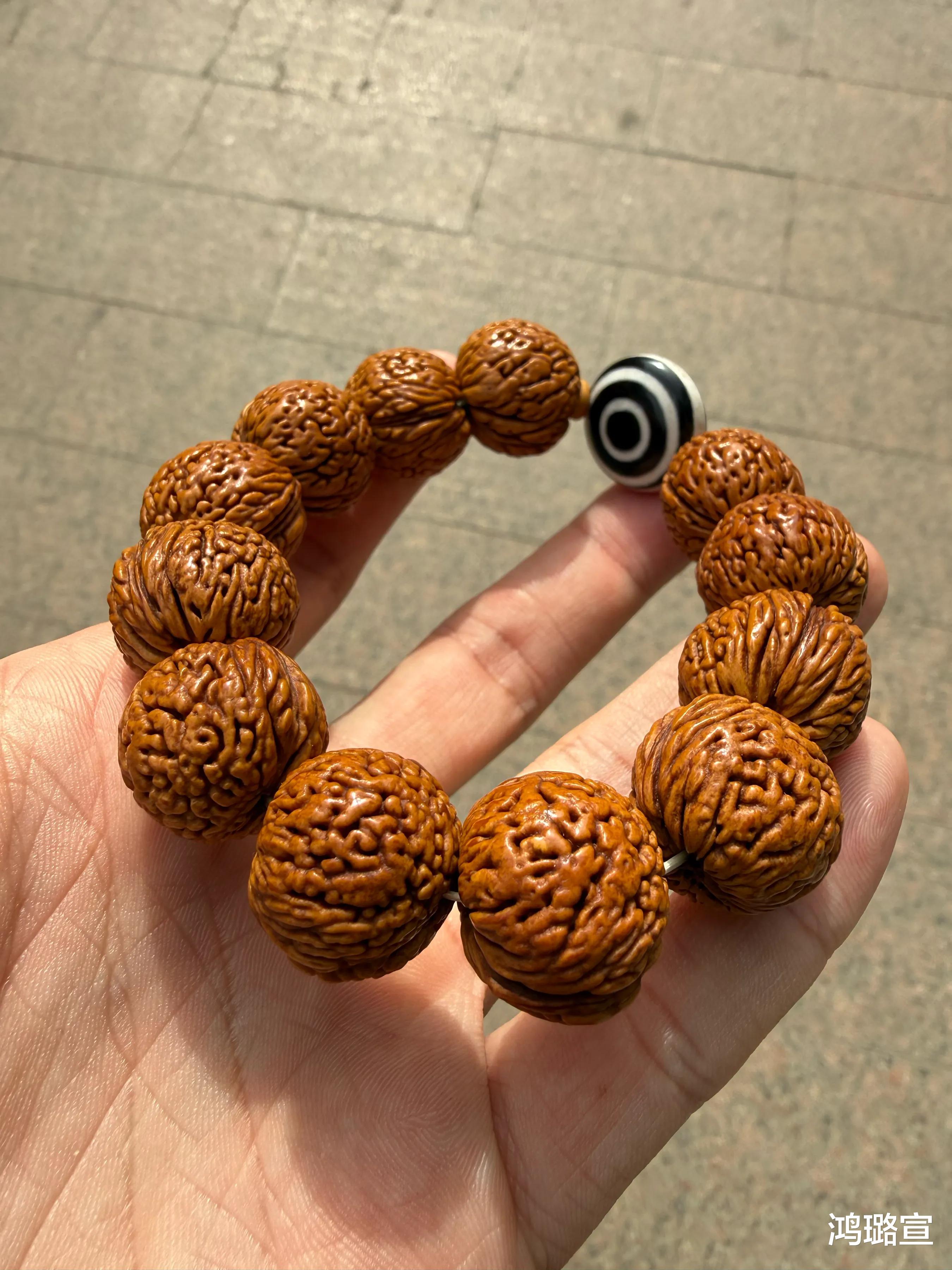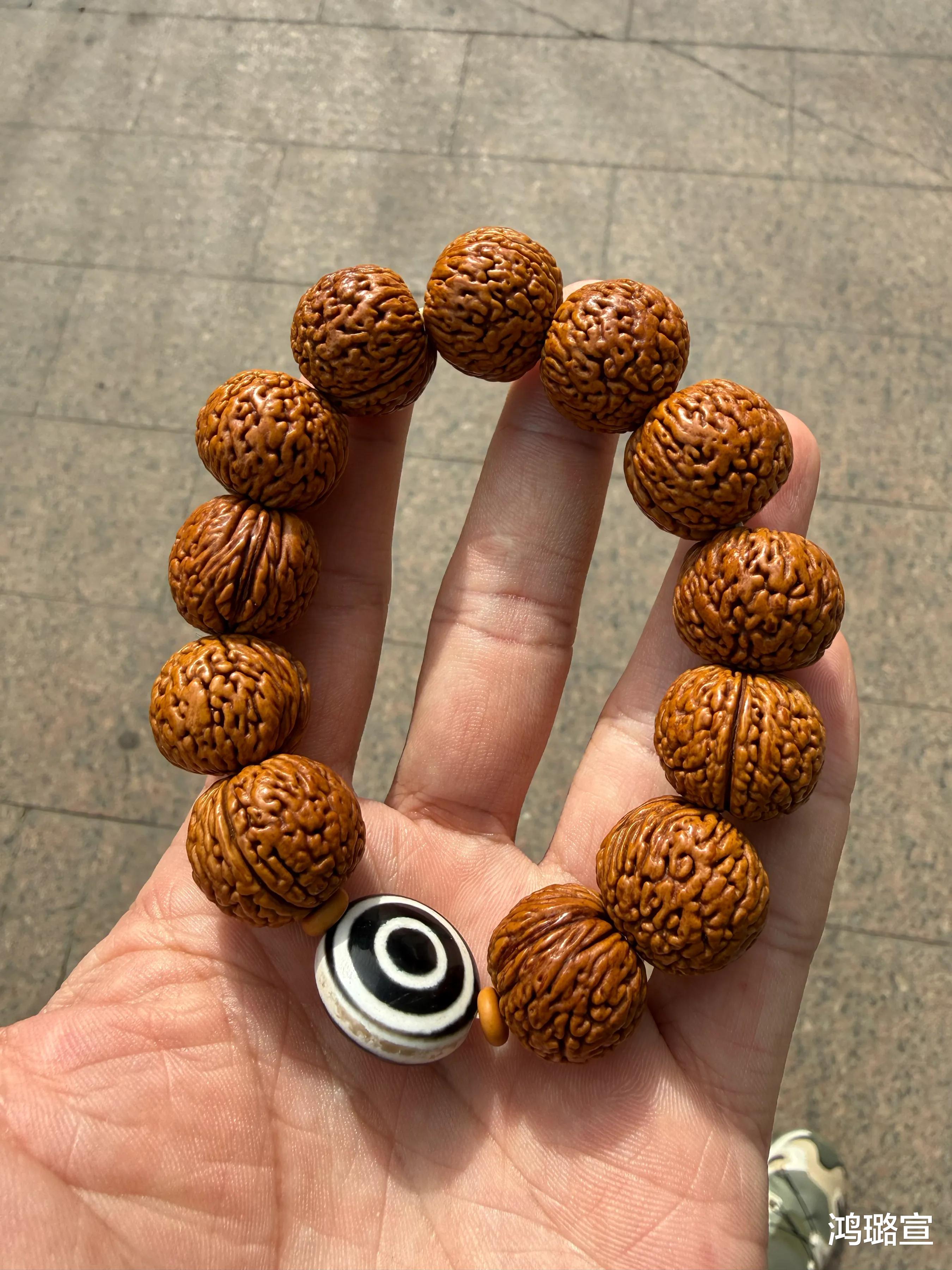 那个时候桃核还在被雪藏的阶段,几乎无人问津!无意间看见两串脑纹桃核就以50元入手了。
