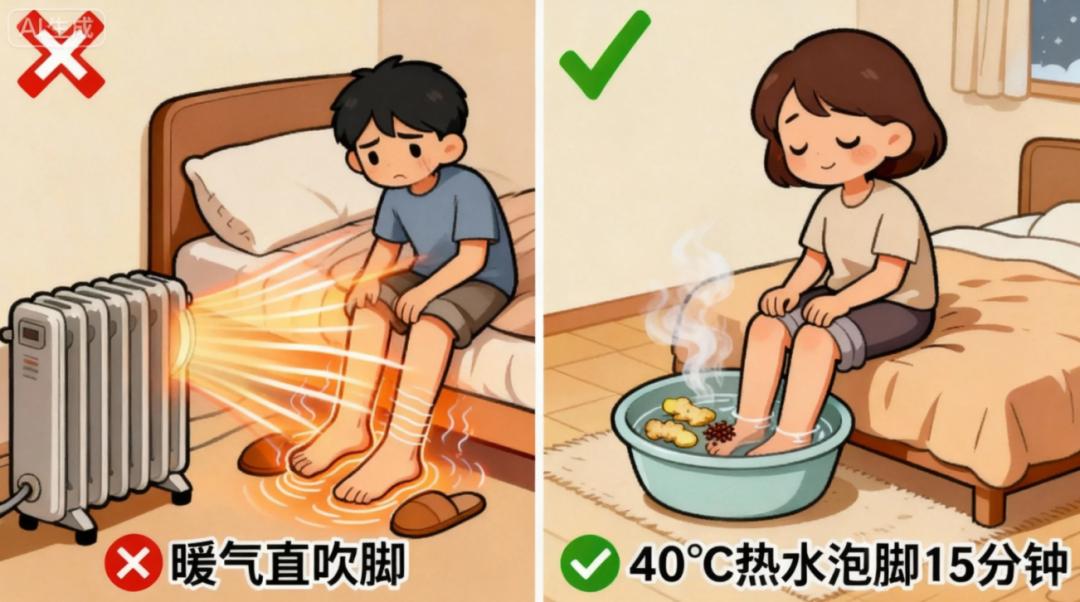 ❌ 误区3:暖气直吹脚
