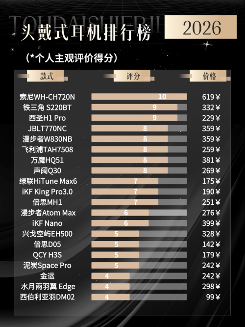 基于多次实测体验,我整理了2026百元价位头戴式耳机10强榜单,帮你避开这些坑,直接选到靠谱机型!