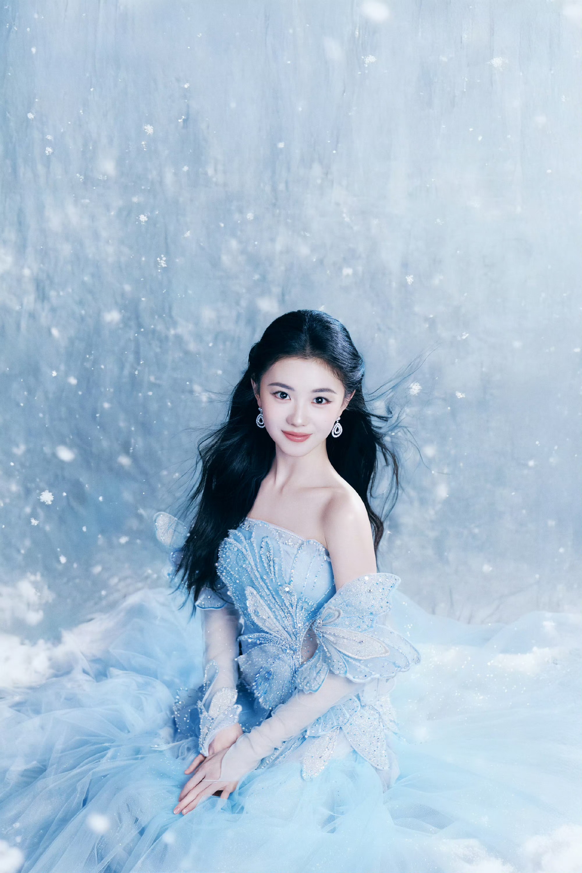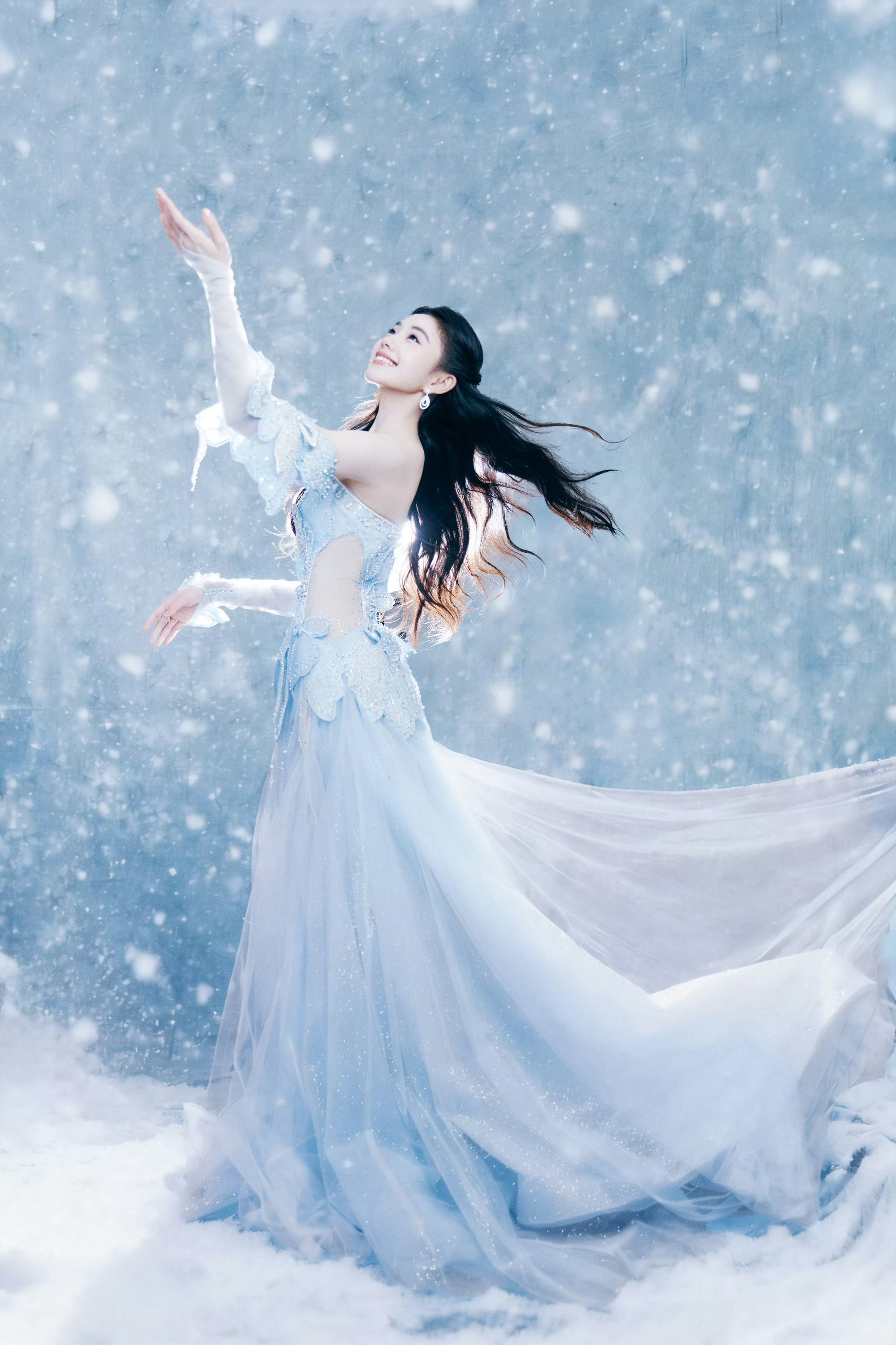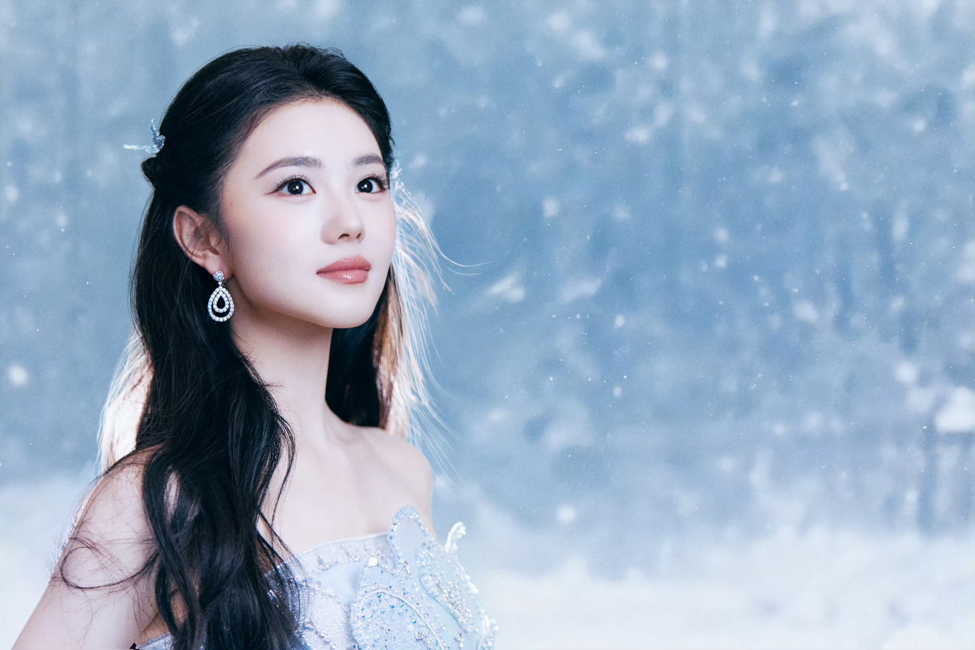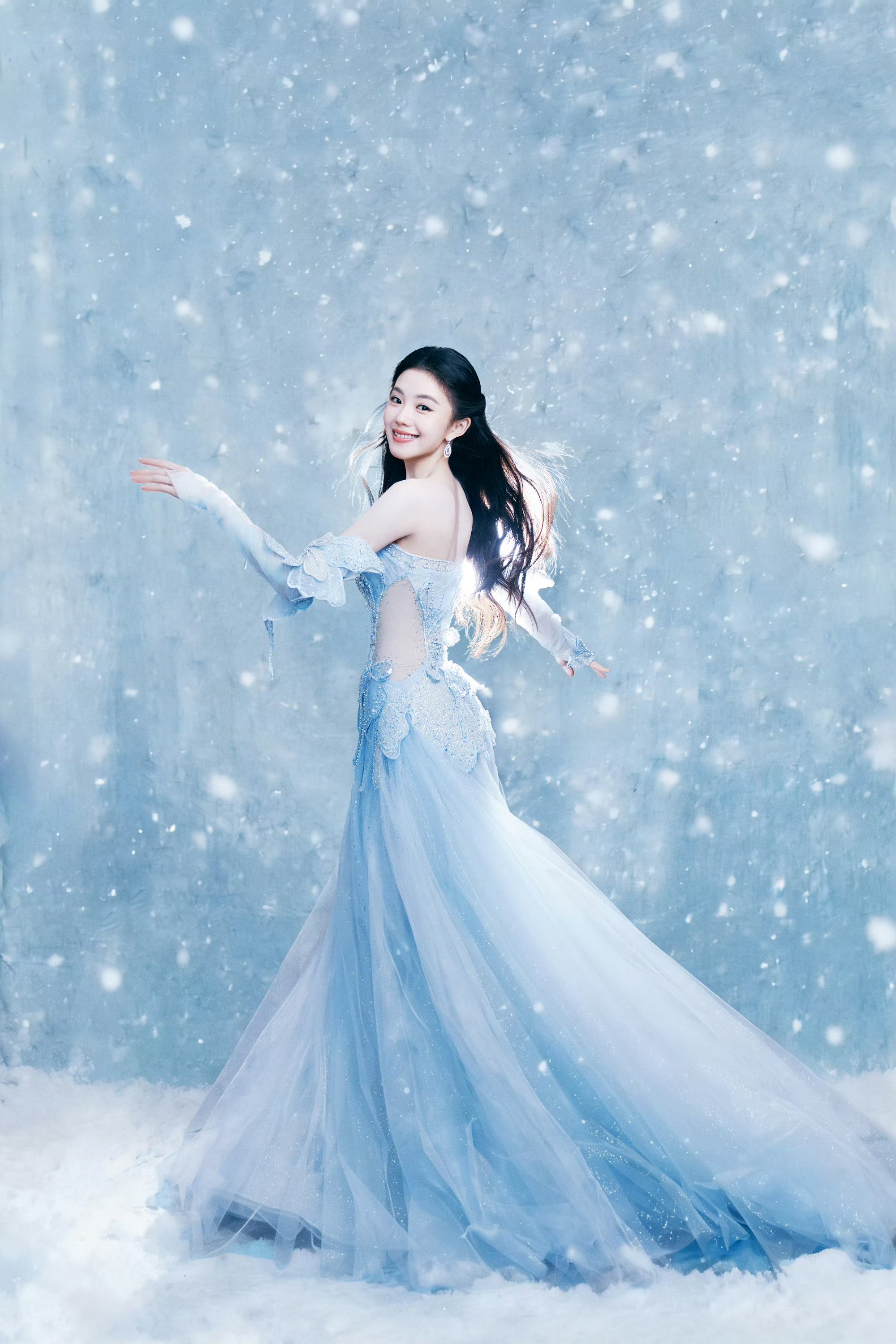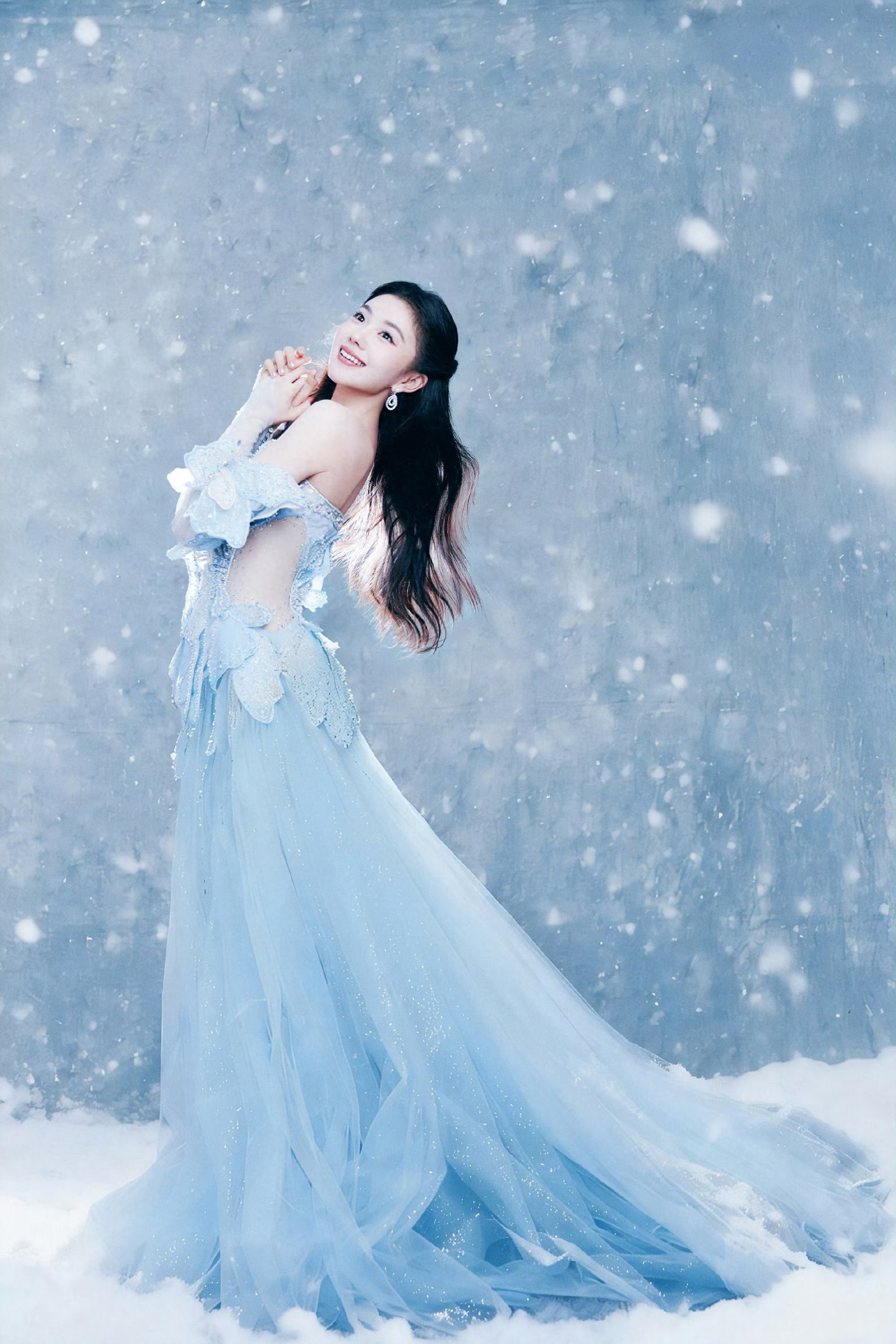 刘浩然浅蓝抹胸礼裙,冰雪公主降临