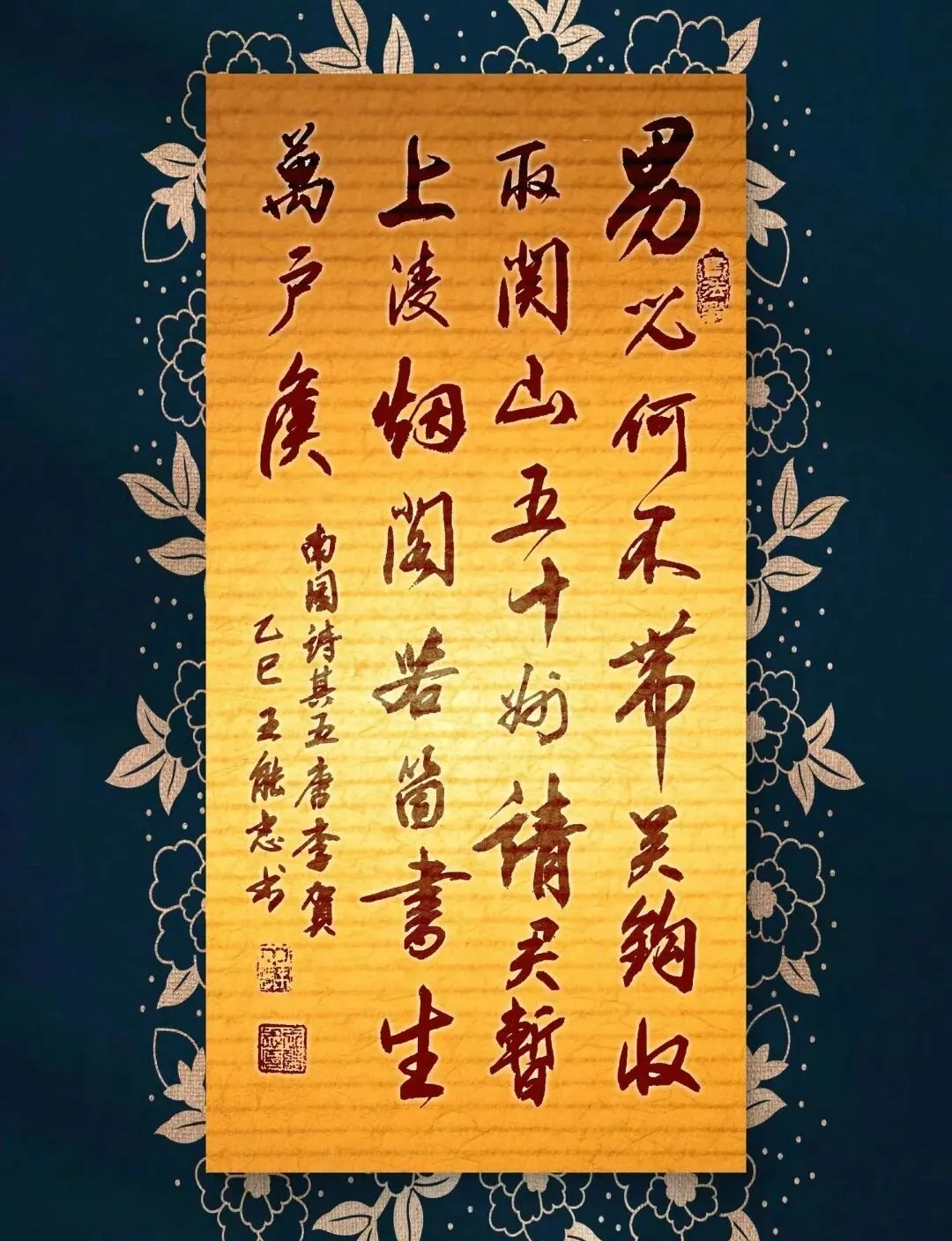 王能志:男、汉族、53岁。职业经商,民间书法爱好者。从小就酷爱书法,苦无良师指点,全凭自己三十多年的不懈努力才有今天的小成!今初次参加墨赞山川杯赛,荣获三等奖。敬请专家老师及同行们斧正指教!