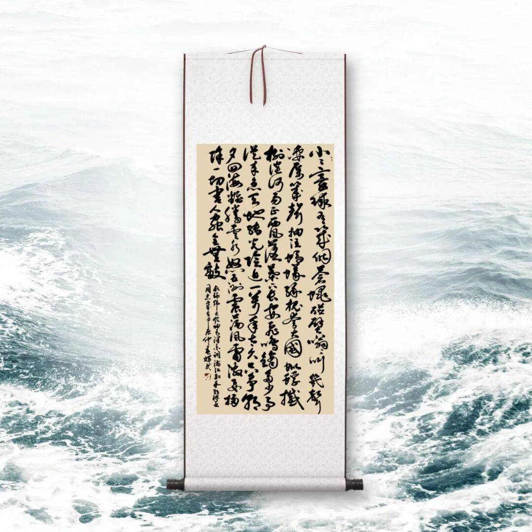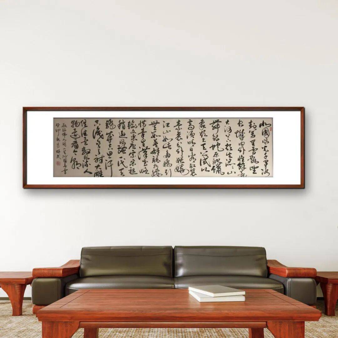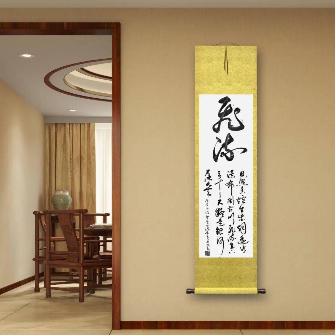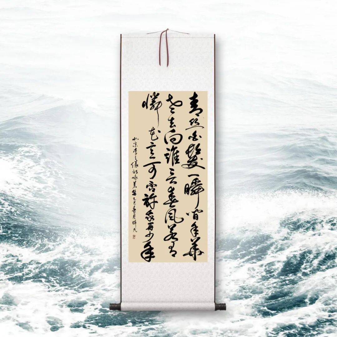 而草书,则是谭辉民老师艺术个性的极致释放,尽显 “笔走龙蛇,气象万千” 之态。草书最能体现书写者的情感与个性,讲究 “破体出新,纵情挥洒”,但自由之下,仍需以法度为纲,否则便成 “野狐禅”。谭辉民老师的草书,无疑是 “放而不纵,狂而有度” 的典范。他的草书作品,线条奔放不羁,笔画简练传神,时而笔走龙蛇,一气呵成;时而戛然而止,留有余韵。字形虽简,却意蕴丰富,省去了不必要的修饰,只保留最核心的笔墨精神,于潦草中见风骨,于狂放中显理性。整幅作品布局疏密错落,墨色浓淡相间,枯湿互映,如疾风骤雨,气势磅礴,却又章法井然,让人感受到草书独有的豪放之美、写意之美。这份 “放得开,收得住” 的功力,正是他二十载兼修不辍的最好证明,彰显了其对书法艺术规律的深刻洞察与灵活运用。