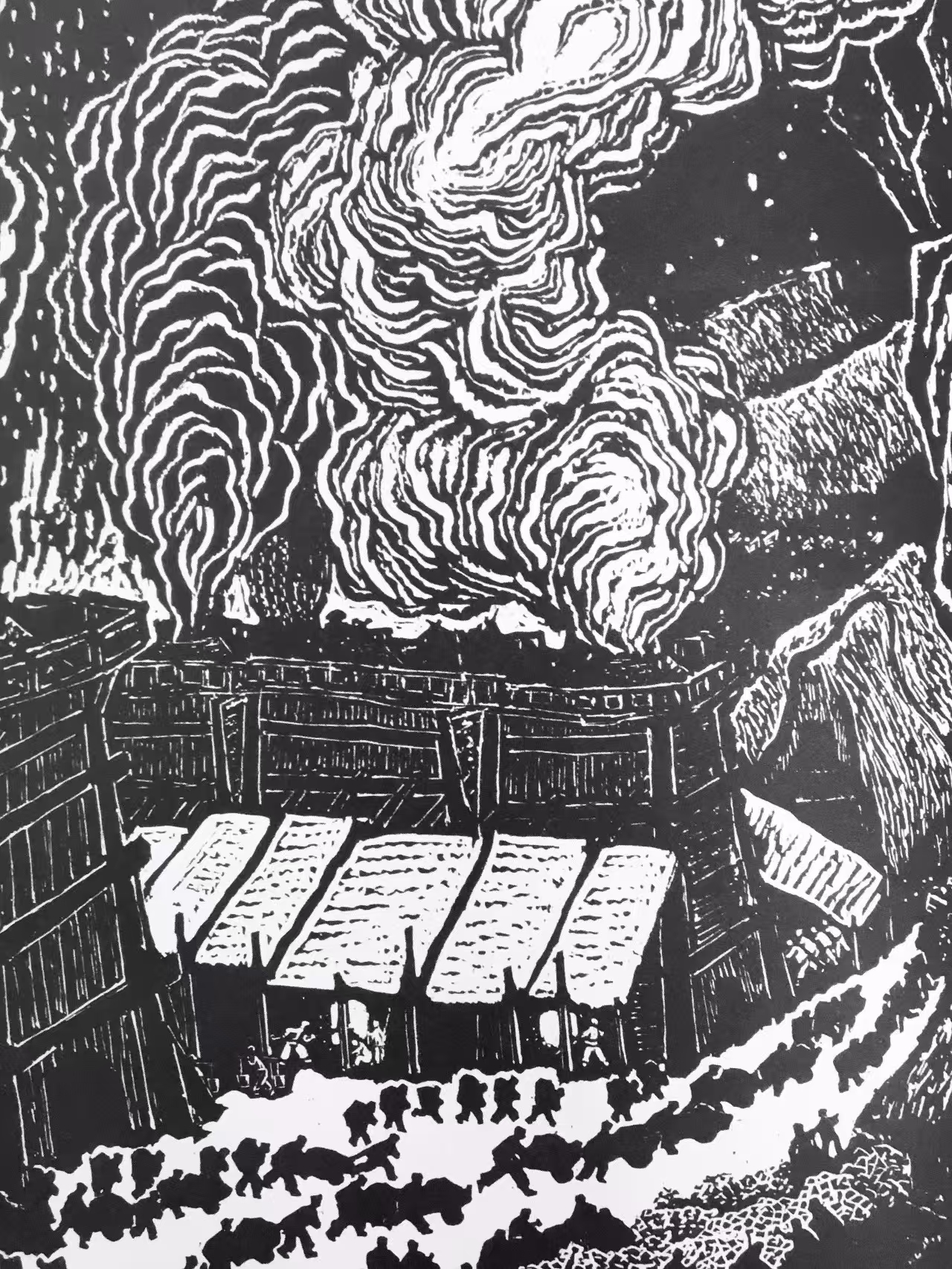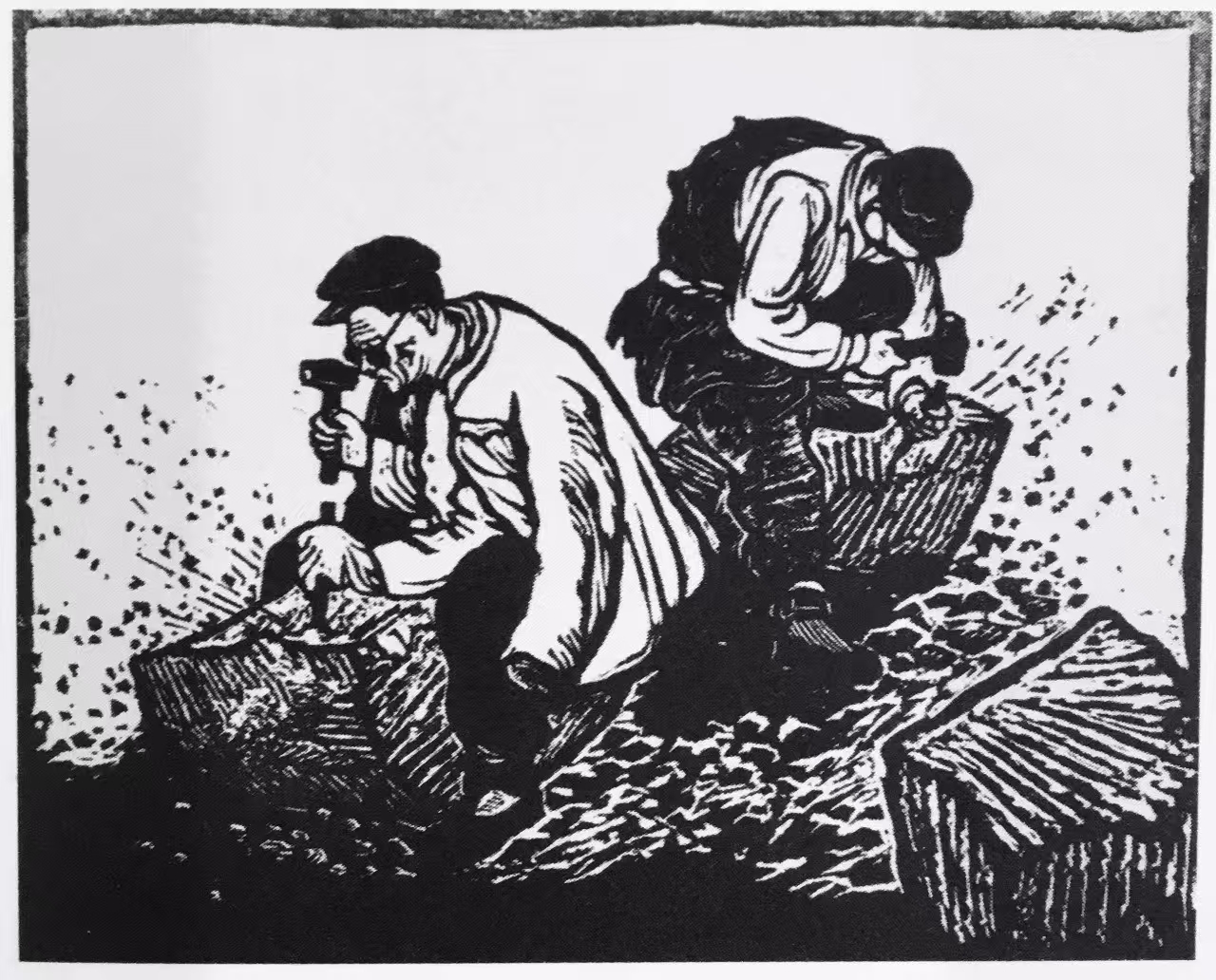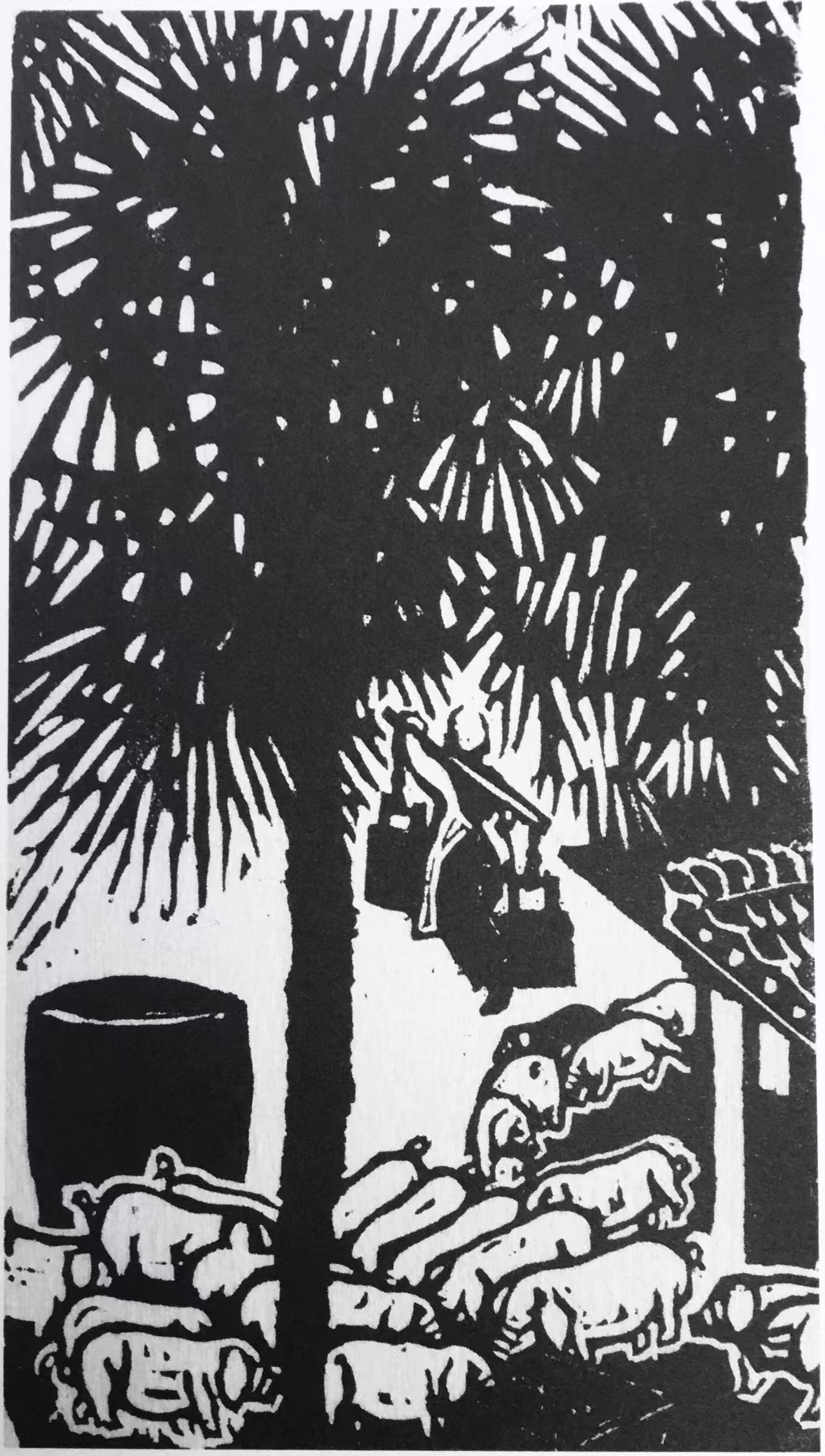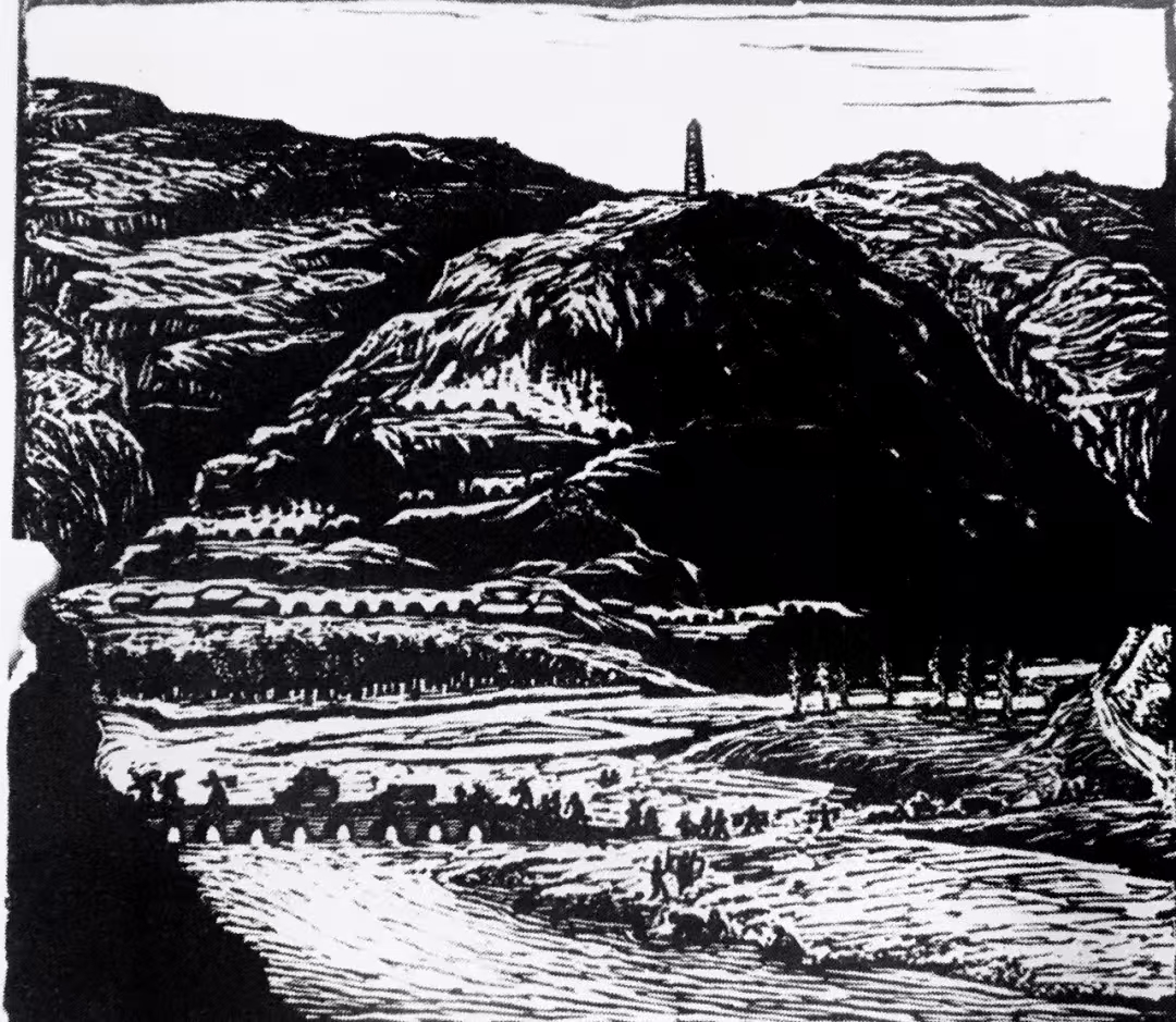 他能够在民族传统石雕与篆刻艺术中吸取营养,从民间剪纸、玩具和木版年画中提炼语素,探索将树木、建筑、人物、云和远景都概括成符号,竭力使自己的作品充满浓郁乡土生活气息。因此,我们才能够在《中国新兴版画史》上品读到这样评价其人其作的文字:“他以别人不曾表现过的方式,以一般人难以接受和理解的创作个性,在版坛中独树一帜。”在现代中西方文化冲突中,鲁迅以“拿来主义”的态度,期待着异域文化对本土文化的巨大启发和补益作用。以他对西方版画进行的了解和介绍,试图用西方版画的人文精神来引导当时的“左翼”青年,转变国人的思想意识。