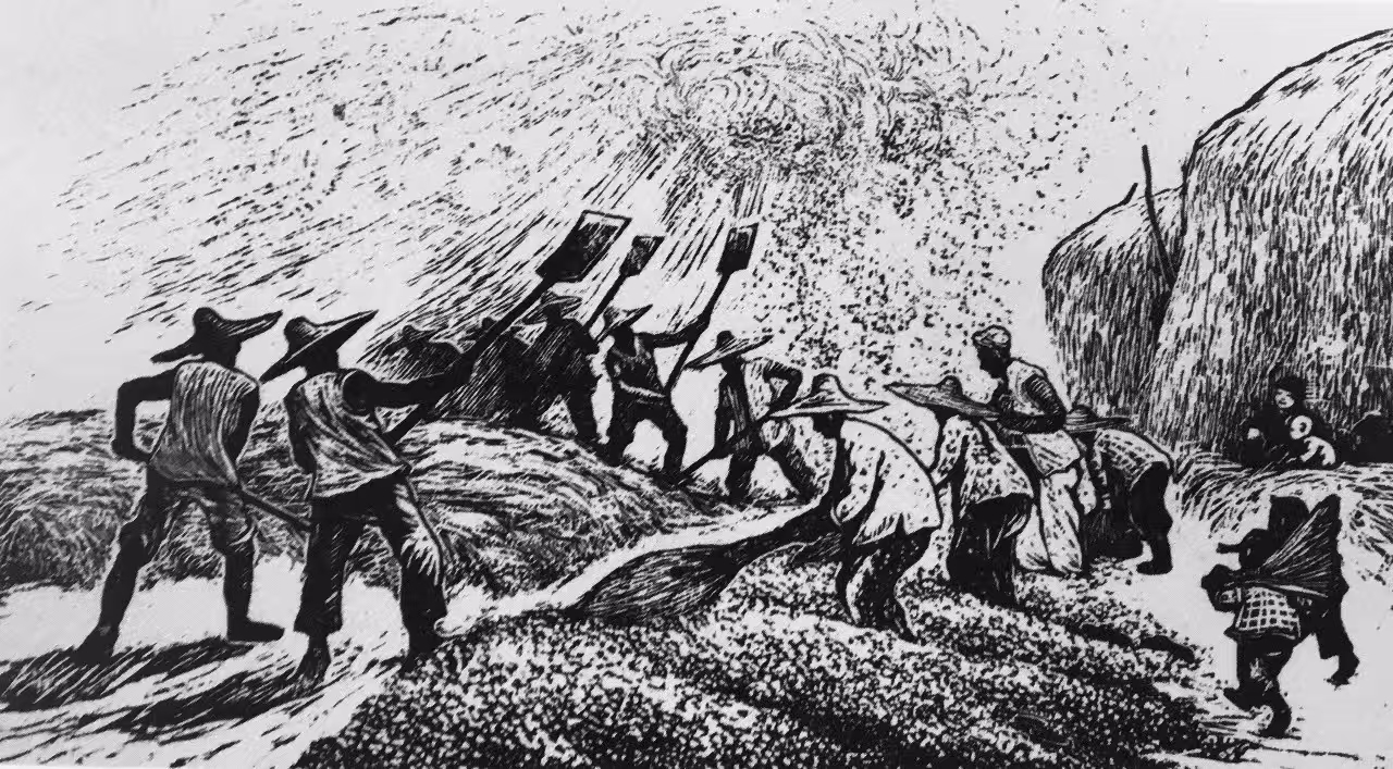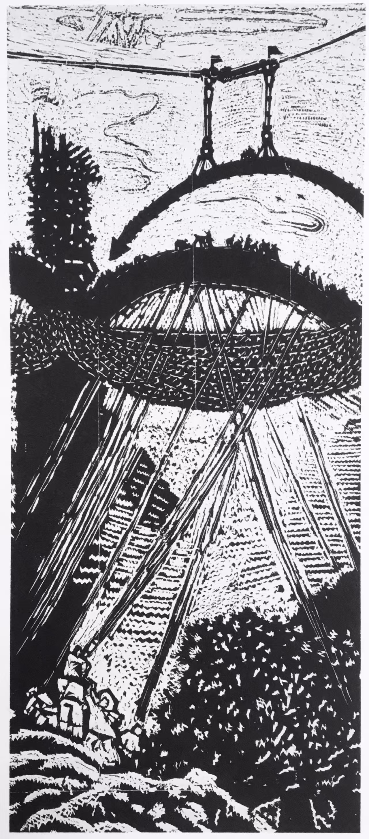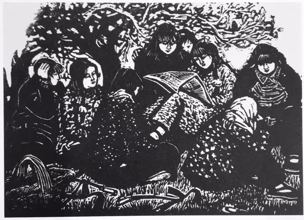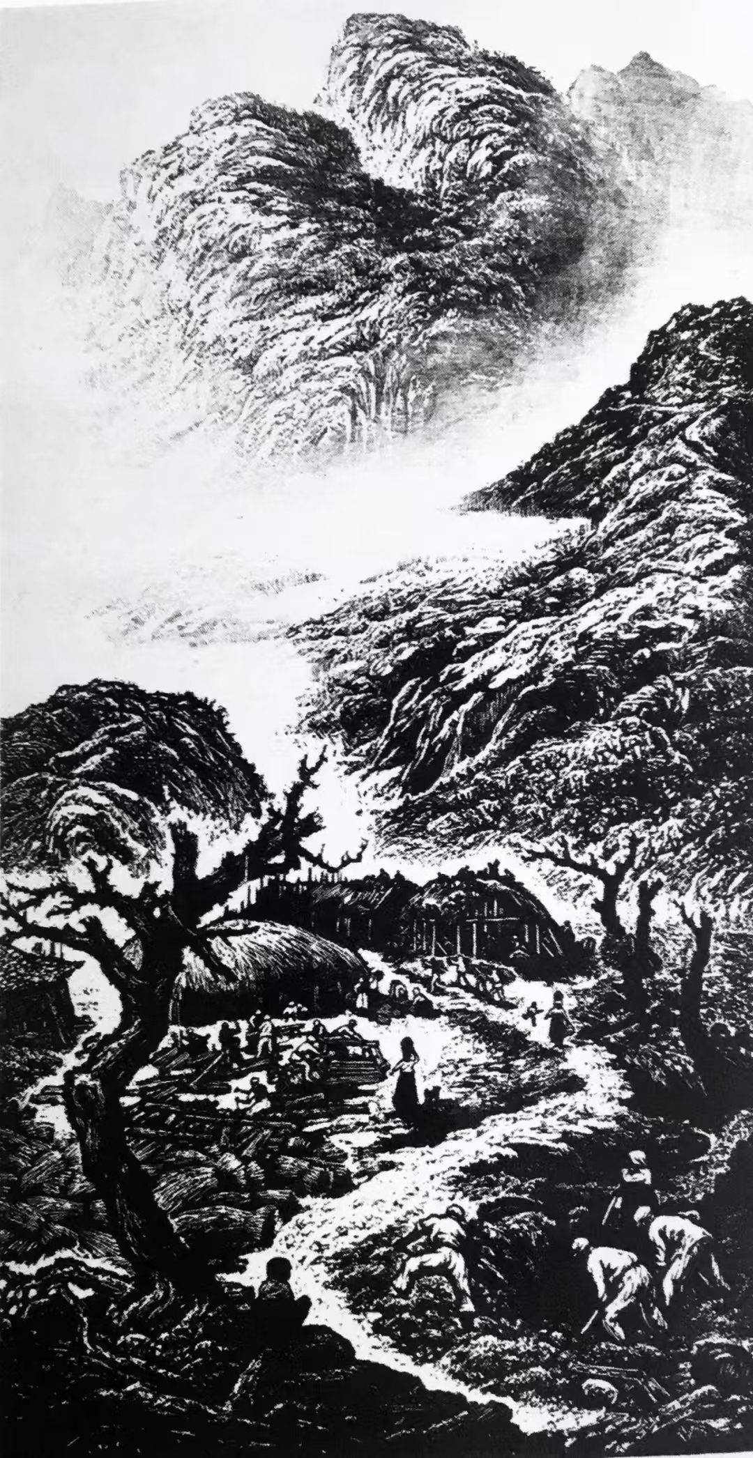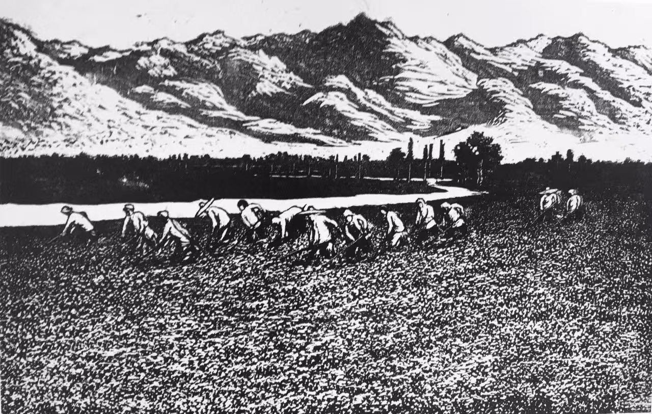 他能够在民族传统石雕与篆刻艺术中吸取营养,从民间剪纸、玩具和木版年画中提炼语素,探索将树木、建筑、人物、云和远景都概括成符号,竭力使自己的作品充满浓郁乡土生活气息。因此,我们才能够在《中国新兴版画史》上品读到这样评价其人其作的文字:“他以别人不曾表现过的方式,以一般人难以接受和理解的创作个性,在版坛中独树一帜。”在现代中西方文化冲突中,鲁迅以“拿来主义”的态度,期待着异域文化对本土文化的巨大启发和补益作用。以他对西方版画进行的了解和介绍,试图用西方版画的人文精神来引导当时的“左翼”青年,转变国人的思想意识。