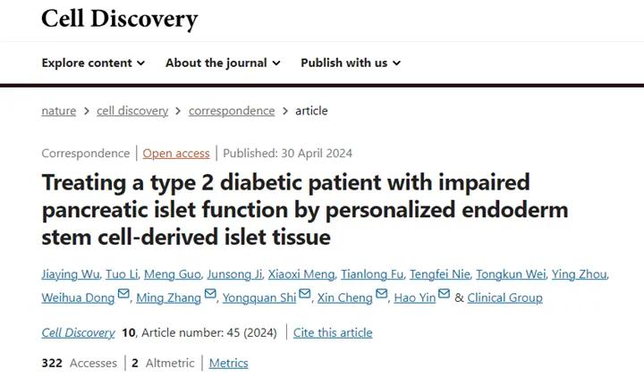 来自海军军医大学上海长征医院和中国科学院分子细胞科学卓越创新中心的研究团队在权威杂志Cell Discovery发表了最新研究成果,干细胞不仅能调控血糖,还能恢复胰岛功能,帮助部分患者摆脱胰岛素的依赖。