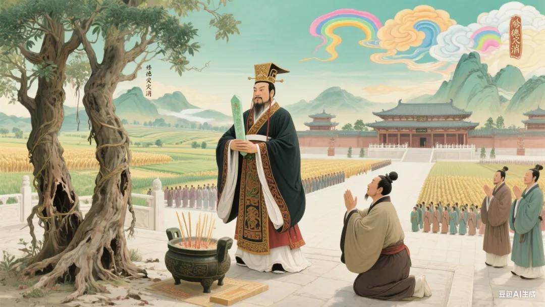 帝雍己去世后,弟弟太戊即位,这就是帝太戊。帝太戊任用伊陟(Zhì)为相。当时亳都出现了怪异的桑树和楮树合生在朝堂上的现象,一夜之间就长得有两手合围那么粗。帝太戊很害怕,就问伊陟。伊陟说:“我听说妖异不能战胜有德之人,君王的政令大概有什么失误吧?您要修明德政。”太戊听从了他的话,那怪异的桑树果然枯死了。伊陟向巫咸称赞了这件事。巫咸治理王室很有成绩,写下了《咸艾》和《太戊》。帝太戊在宗庙中称赞伊陟的功劳,表示不把他当臣子看待,伊陟谦让,就写了《原命》。殷商再度兴盛,诸侯都来归附,因此称太戊为中宗。