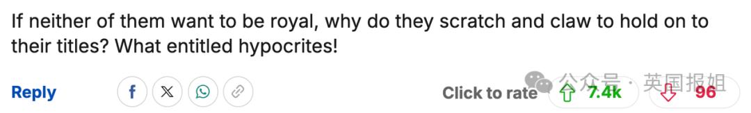 “如果他俩都不想当王室成员,那为啥要亮爪使劲握住自己的头衔呢?多么自以为是的伪君子!”