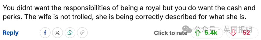 “你们不想承担王室成员的责任,但又想要钱和占便宜。这老婆并不是被全网黑,大家只是在正确地描述她本人罢了。”