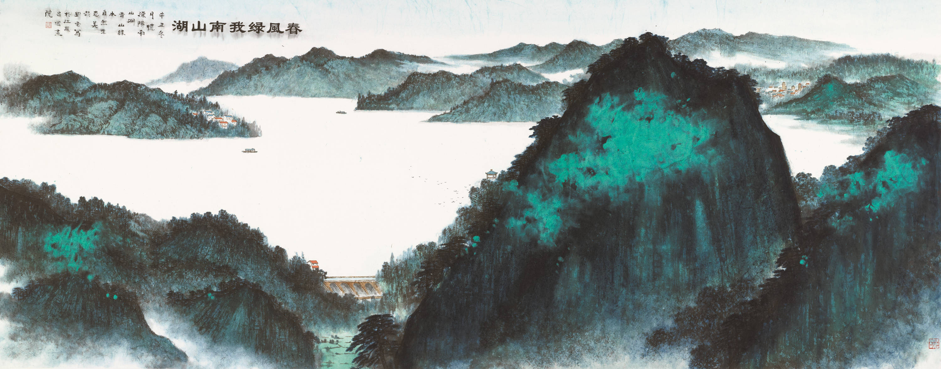 "刘 云 春风绿我南山湖 142cm×359cm 2021年"