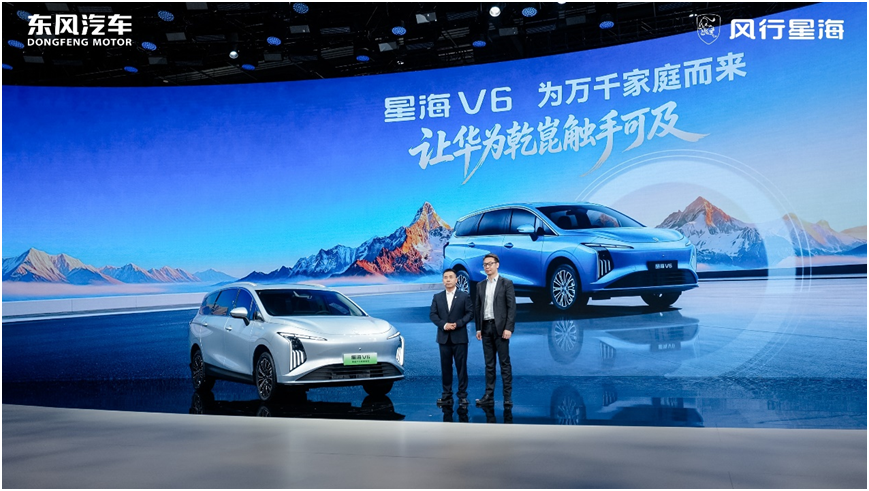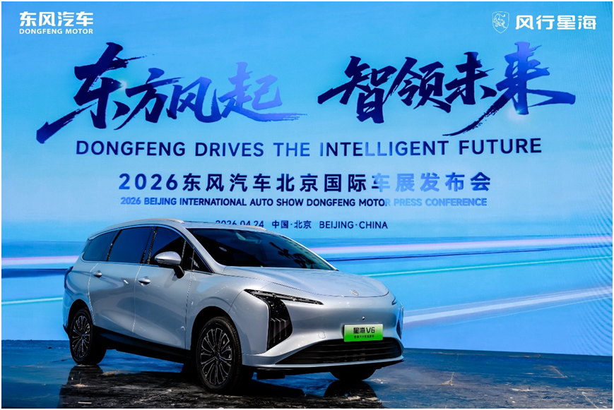 4月24日,在2026年(第十九届)北京国际汽车展览会现场,东风风行旗下全新纯电大六座车型——星海V6正式亮相。作为东风风行与华为深度协同开发的首款车型,星海V6搭载华为乾崑智驾,以“为家而来”为核心开发理念,专为多人口家庭用户打造,旨在让中国万千大家庭拥有更智慧、更从容、更体面的出行新选择。