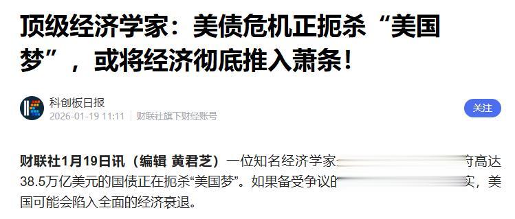 顶级经济学家:美债危机正扼杀“美国梦”,或将经济彻底推入萧条!——科技创日报