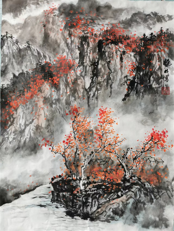 张晓林自幼与书画结缘,对国画艺术的痴迷和执着研习不辍,未有一日不是笔不离手、画不离心。山水画作品有着強烈鲜明的个性,且有所悟,水墨山水,自成一家,功力深厚,用笔洒脱,构图多变,千幅千境,意境深远,纯属自然。擅长神农架山水风光,博大而又统一,清静而又自然的神气。
