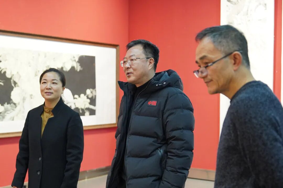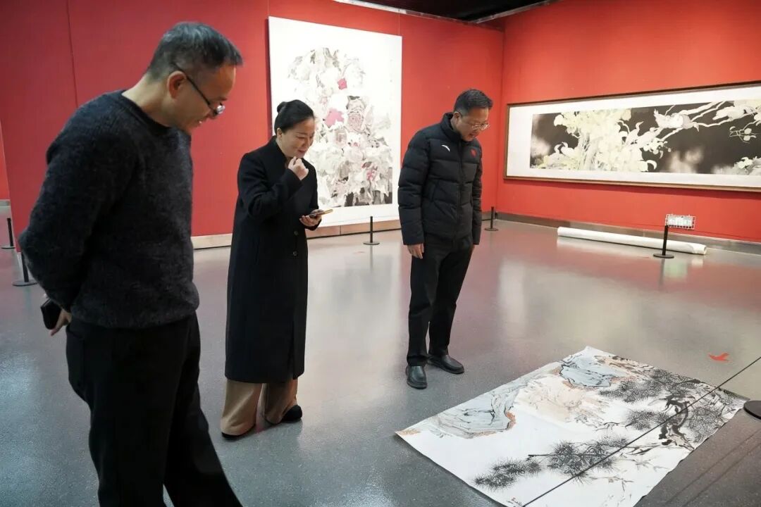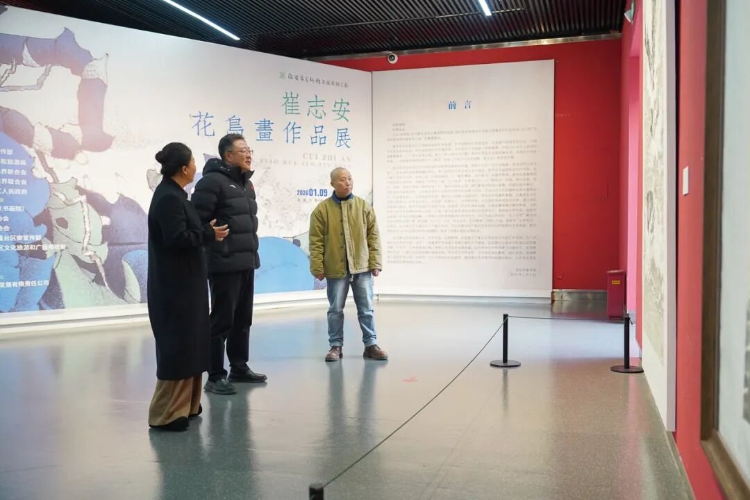 1月28日上午,市委常委、宣传部部长李森莅临淮安市美术馆观摩“淮安市美术馆名家系列工程:崔志安花鸟画作品展”。现场,李部长与书画家们围绕崔志安先生的创作脉络、笔墨特色与作品意境深入交流,在品味作品凝练的东方美学意蕴之余,感受北方文化的独特魅力与南北地域艺术碰撞的精彩,更从其融传统精髓与当代意趣的创作实践中,体会到传统花鸟艺术文脉在当代语境下的鲜活生命力与创新表达。