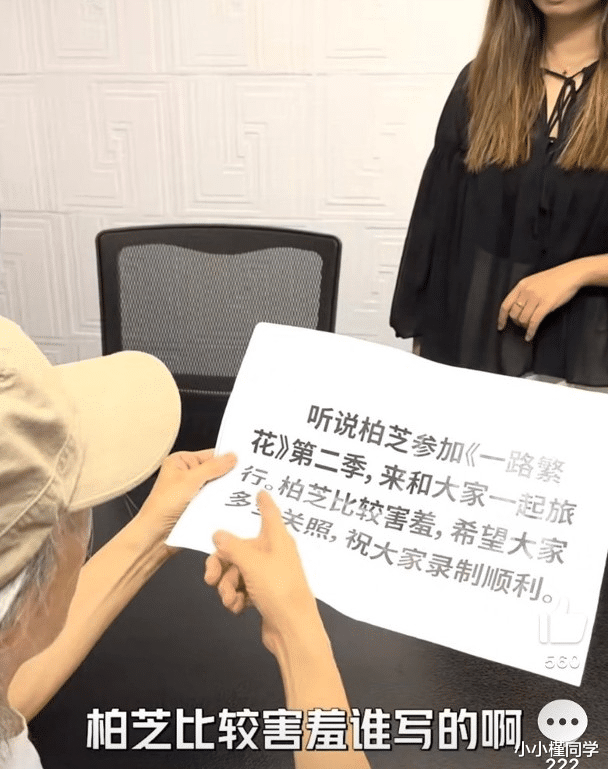 视频中,女助理向星爷递上大字报,星爷边看边用广东话朗读:“听说张柏芝参加《一路繁花》第2季,来和大家一起旅行。张柏芝比较害羞,希望大家多多关照,祝大家录製顺利。”怎料下一秒,他竟装作生气地把纸丢在桌上,问:“柏芝比较害羞,谁写的啊?”女助理告知:“他们咯”,周星驰把大字报丢到桌上,没好气说:“怎么这么离谱,谁说得出口啊。”尽显一贯星爷的幽默。