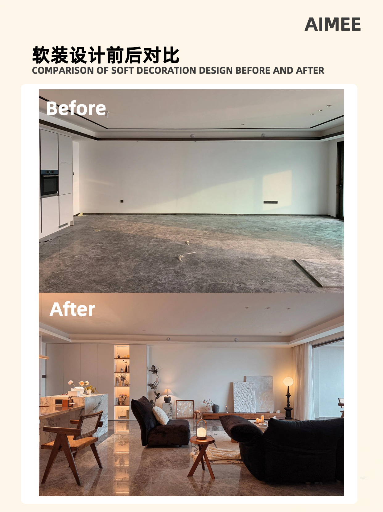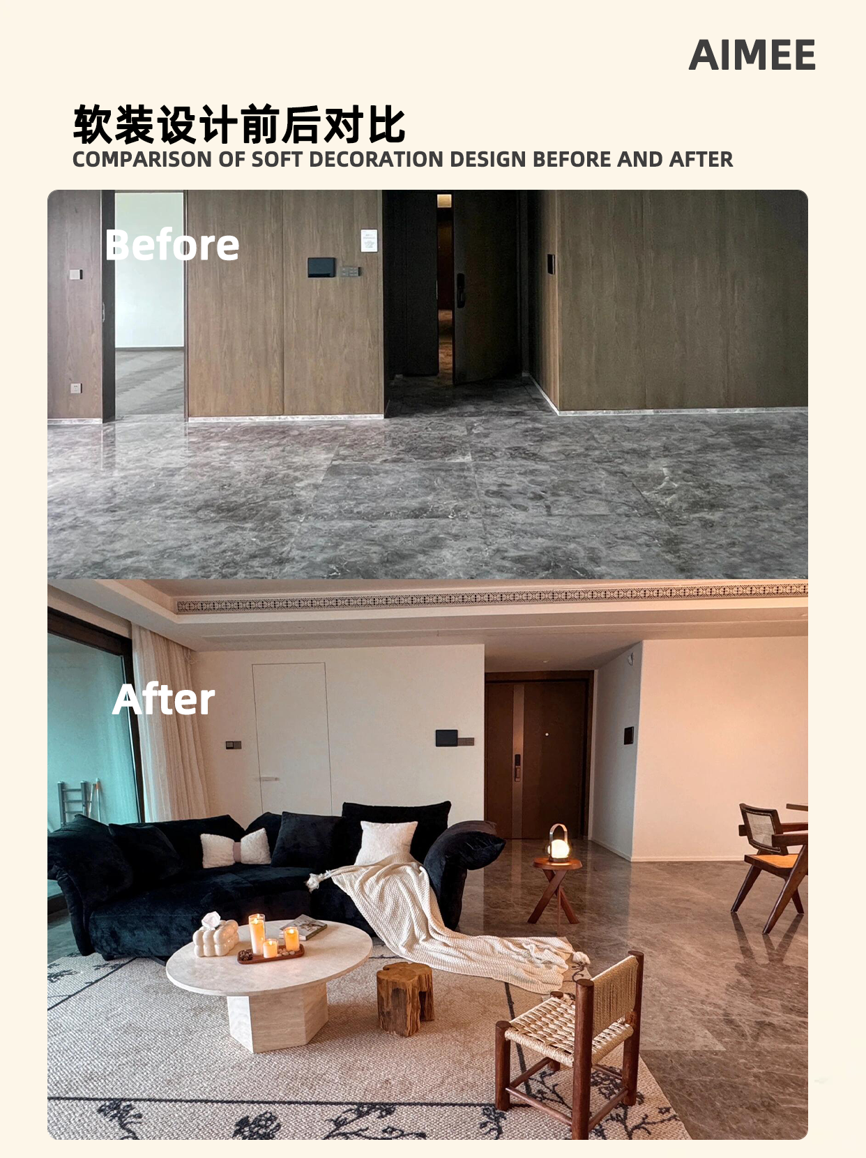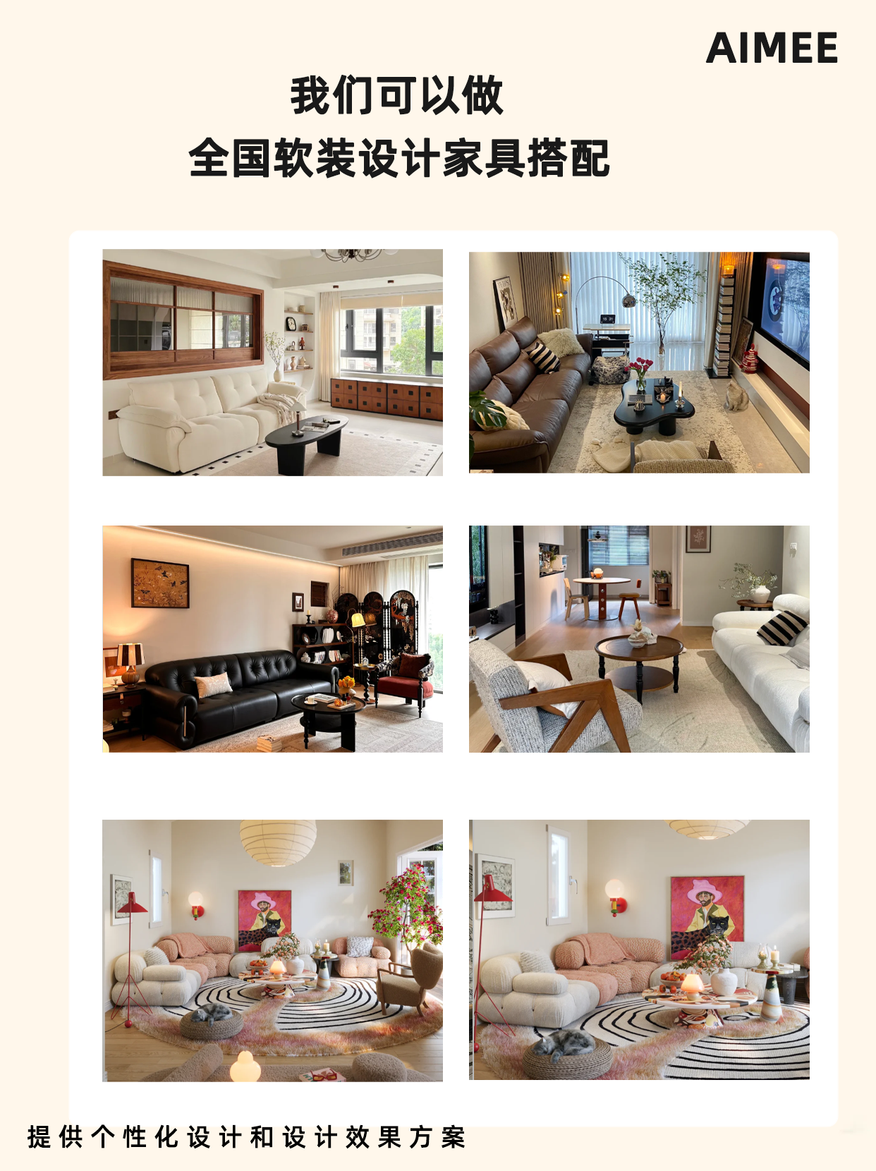 1、国内全案落地:我们提供整体软装设计搭配及一站式落地服务。