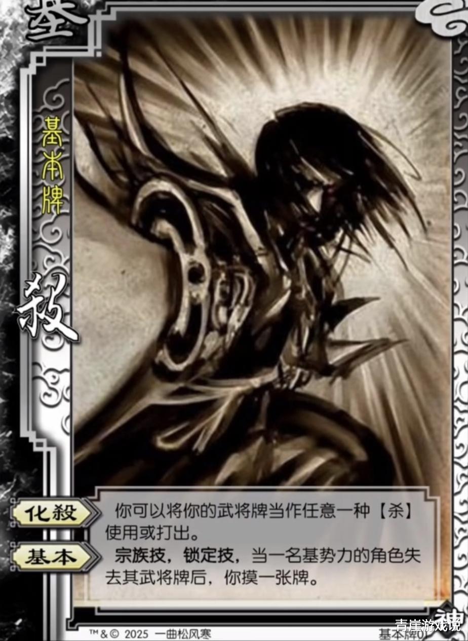 首先便是基本牌杀,作为最基础的一张牌,他的【化杀】是将自己的武将牌打出去,但是可以转化成雷、火任意属性的杀,将自己献祭。如果杀牌队友阵亡【基本】则能摸一张牌,作为最基础的卡牌,杀牌更像是有输出能力的炮灰。