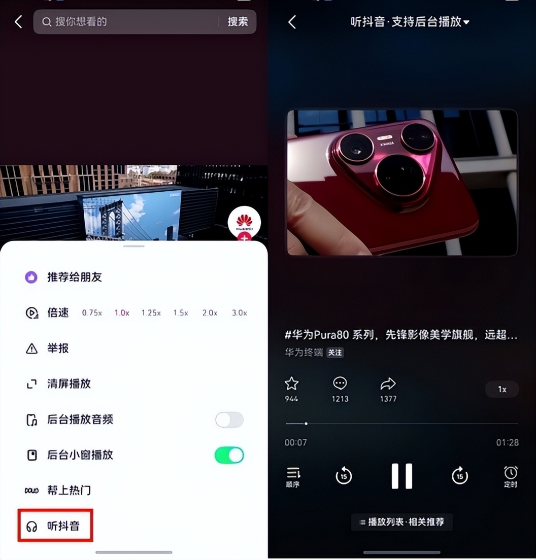 但两周多的使用下来,我彻底被征服了。新机到手,我第一时间装了抖音。使用体验超棒,视频播放流畅,直播互动毫无延迟,购物功能也一应俱全。新出的“听抖音”功能简直是我的通勤神器,长按视频开启后,锁屏或切到后台,声音依旧清晰播放。在拥挤的地铁上,我闭着眼睛就能听新闻、学知识,还不用担心电量消耗过快。